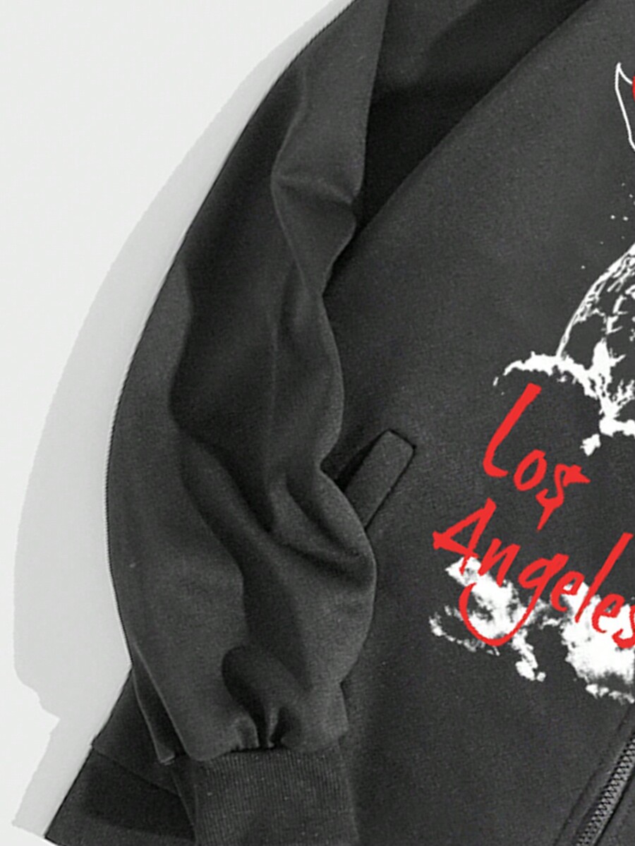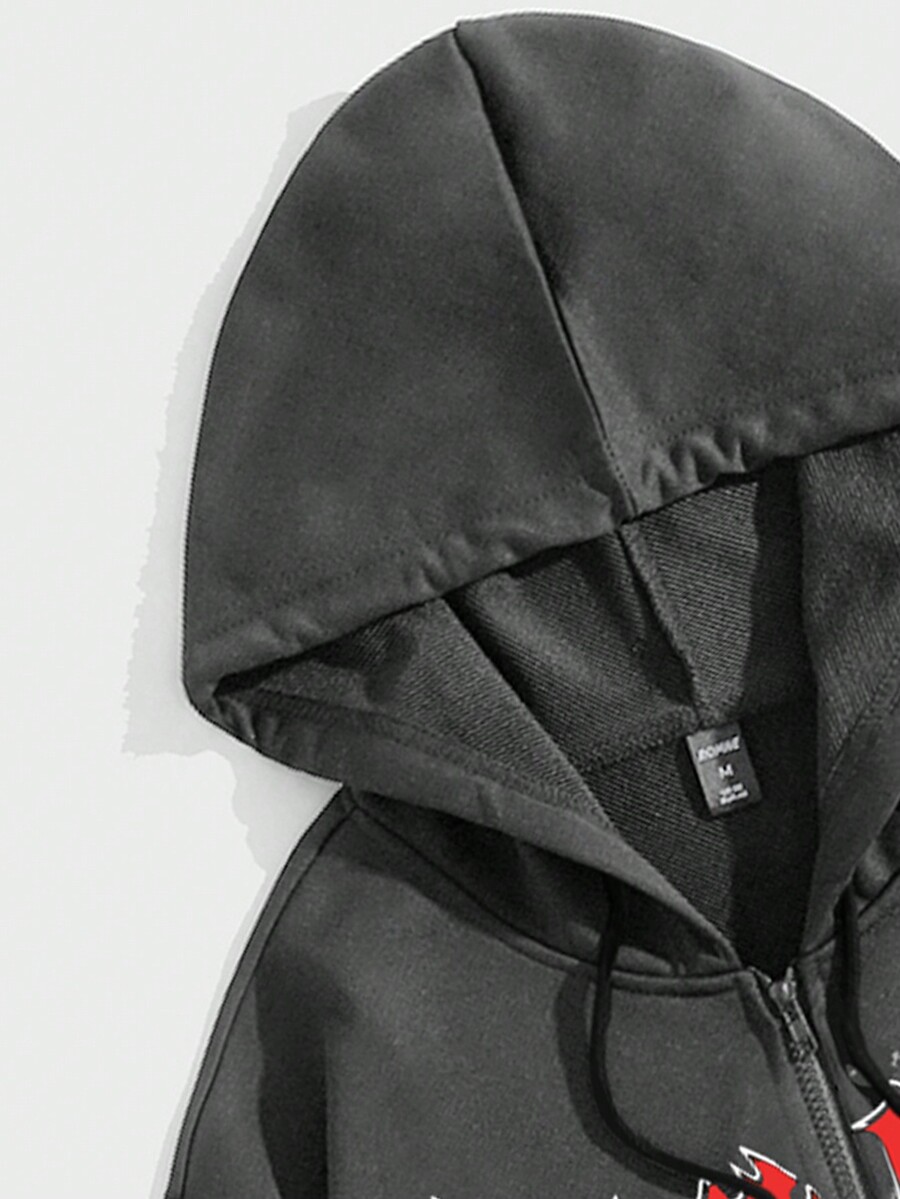 Goth Ragazzi Felpa con cappuccio lettere & con stampa teschi con coulisse