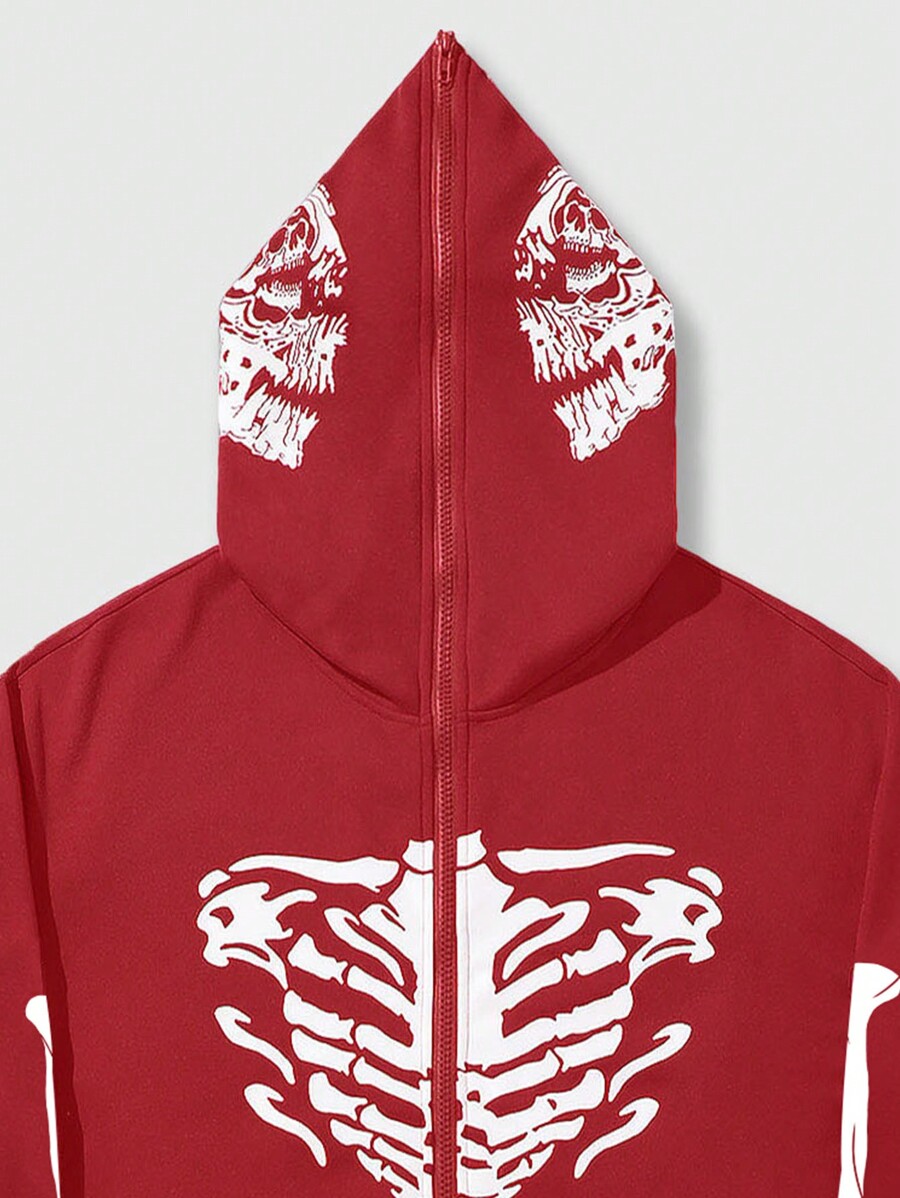 Goth Ragazzi Felpa con cappuccio con stampa scheletri con zip foderato termico