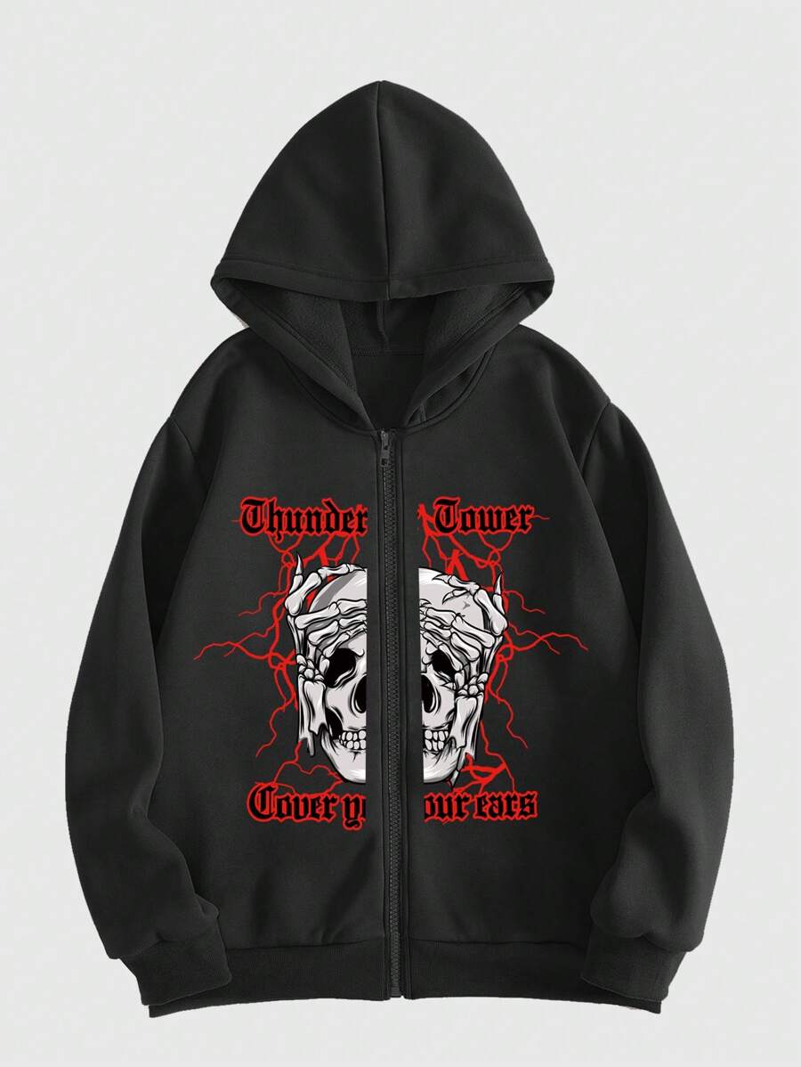Goth Ragazzi Felpa con cappuccio cranio e lettera con zip foderato termico