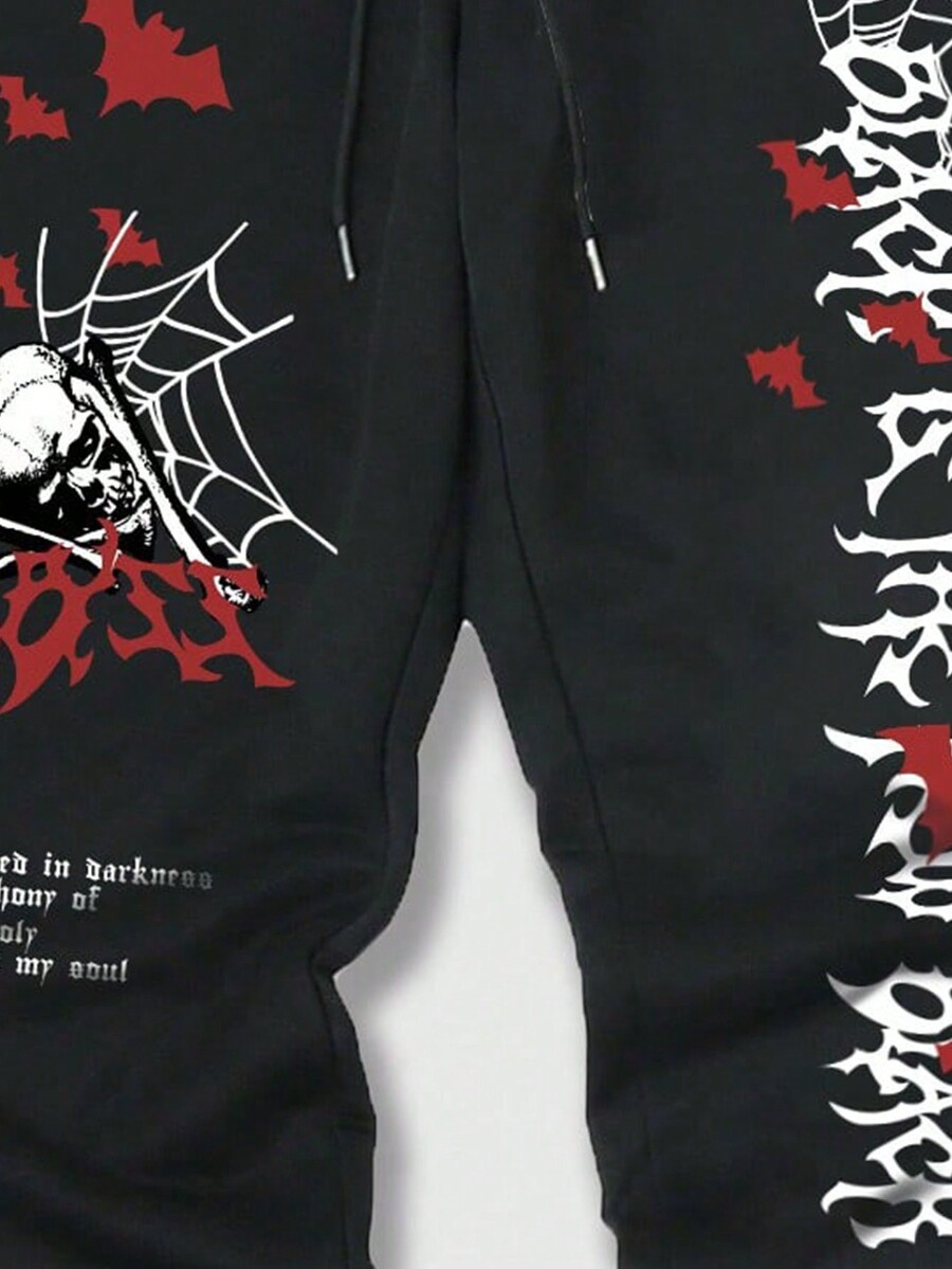 Goth Ragazzi Pantaloni sportivi teschio & con grafica slogan con coulisse a vita