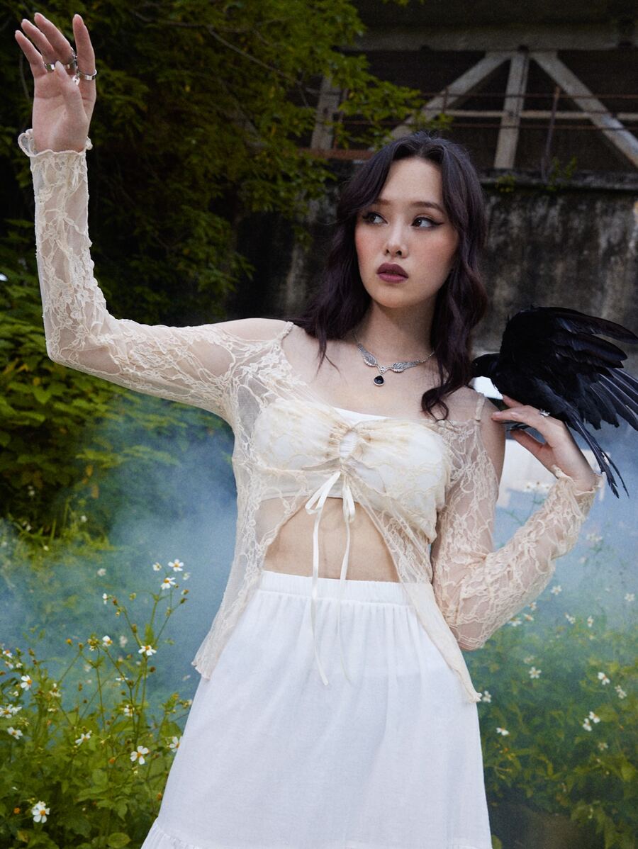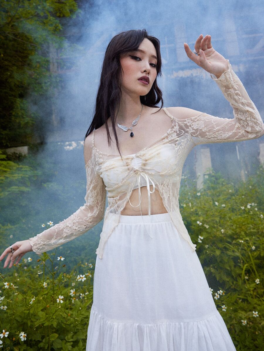 Goth Top pizzo con coulisse con spalle scoperte senza top a fascia