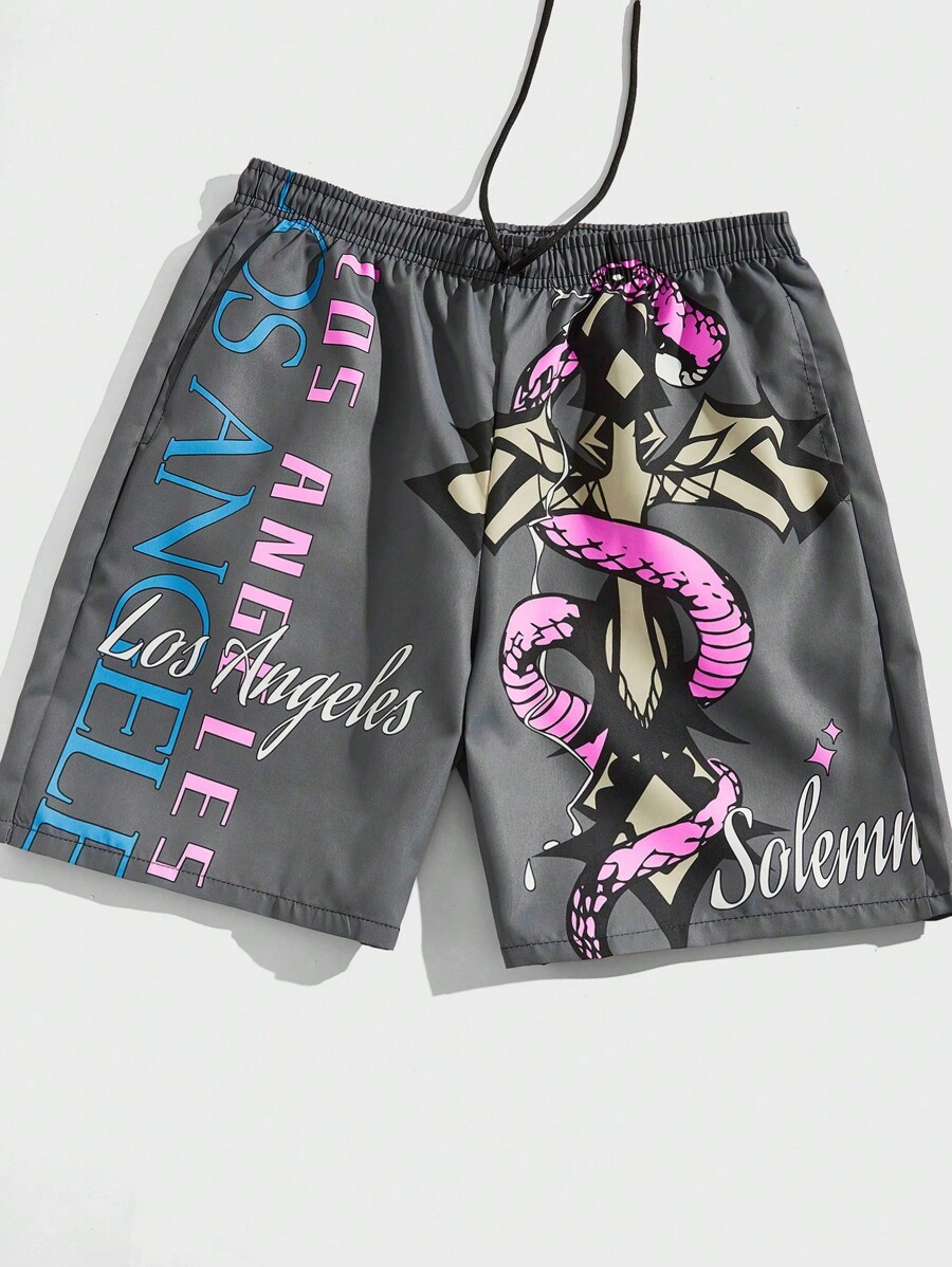 Goth Uomo Shorts lettere & serpente grafico con coulisse a vita