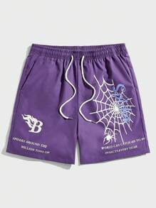 Goth Pantaloncini corti con coulisse in vita e grafica con slogan, per scuola