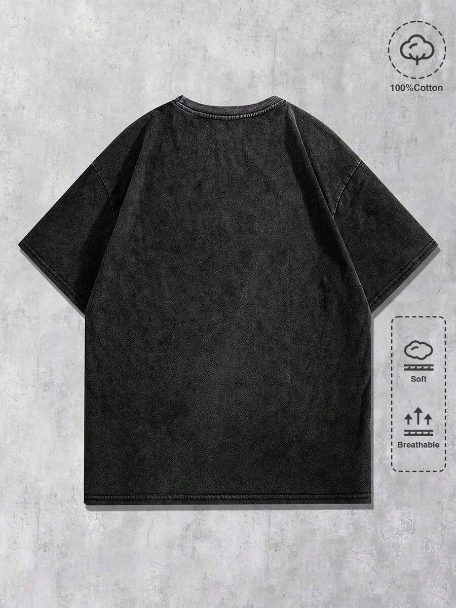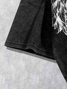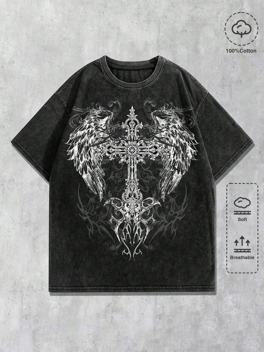 Goth T-shirt casual da uomo a maniche corte con stampa a croce e ali, estiva