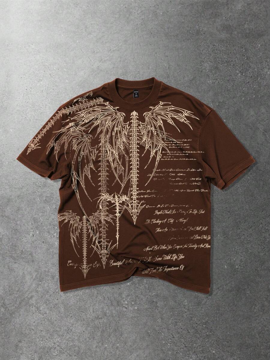 Goth maglietta casual da uomo a maniche corte con scollo rotondo, stampa con slogan e ali, estiva