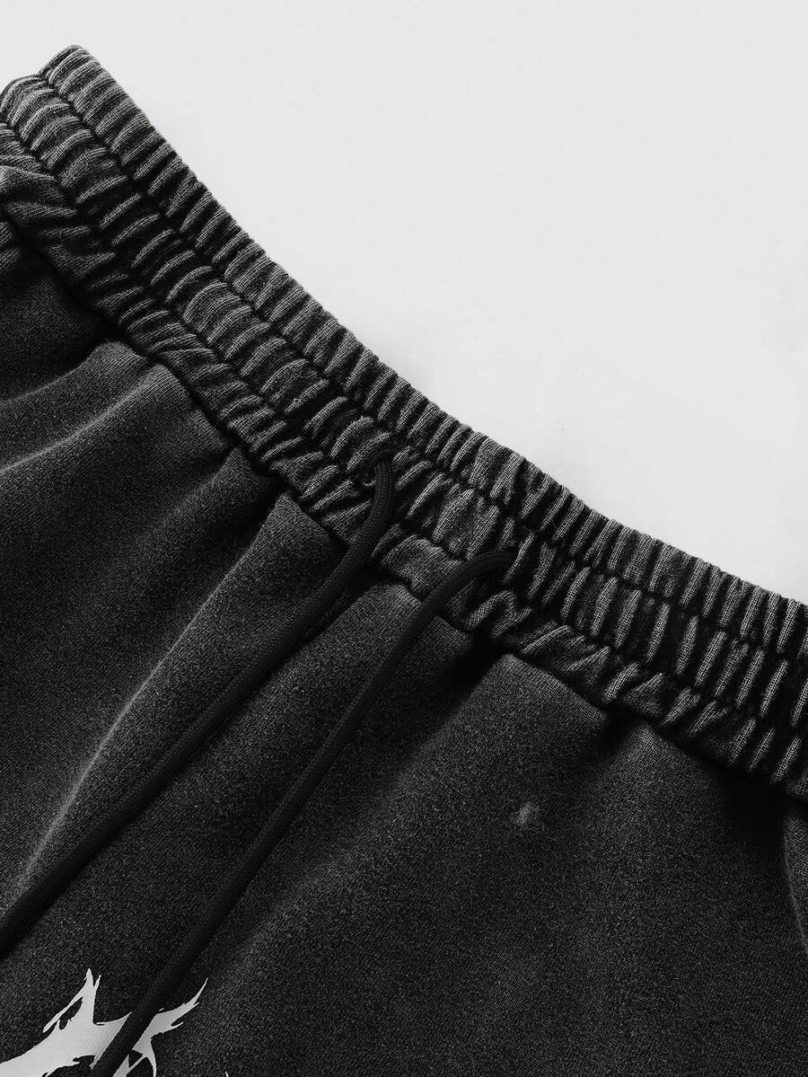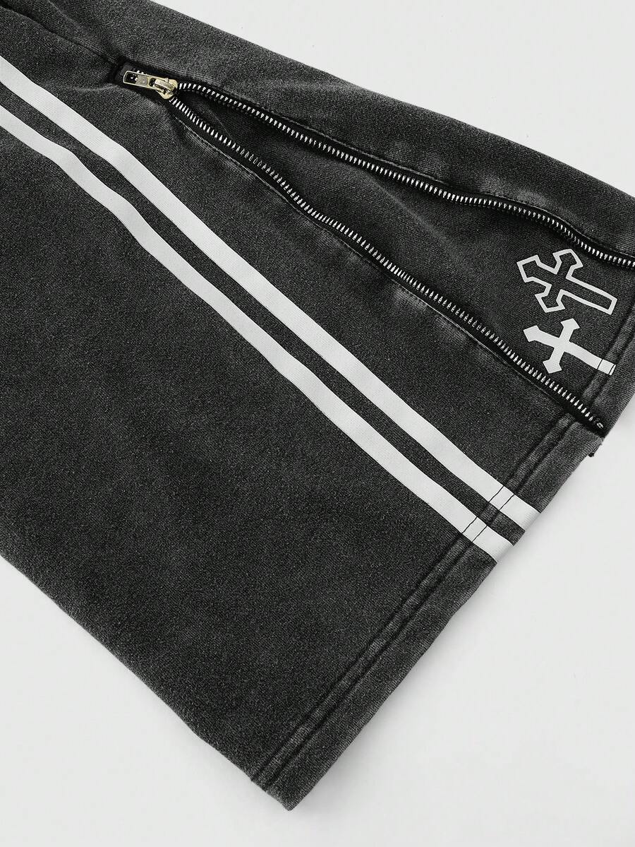 Goth Pantaloni casual sportivi da uomo di con stampe a contrasto con lettere e croce, strisce laterali, chiusura lampo laterali, vestibilità ampia e gamba larga