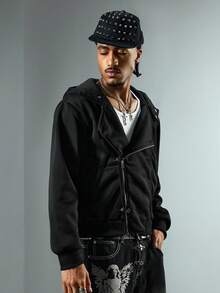 Goth Felpa con cappuccio casual e versatile da uomo con cerniera e fibbia a forma di aeroplano