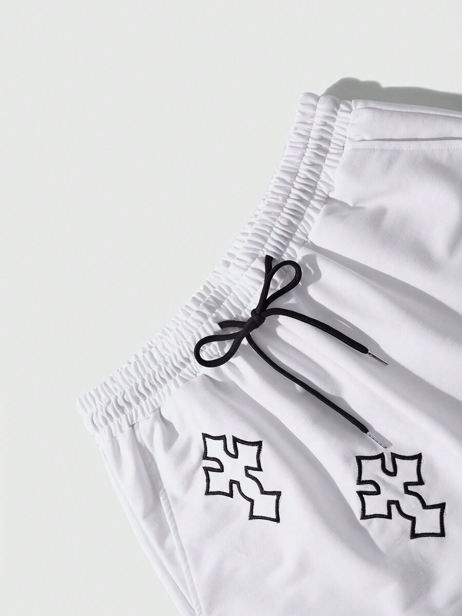 Goth Shorts Da Uomo Con Stampa Croce E Cintura Con Coulisse