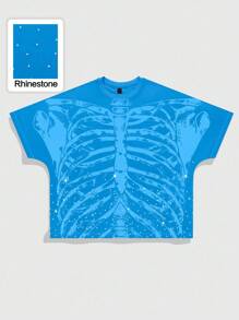 Goth maglietta a maniche corte con stampa teschio di diamanti, vestibilità ampia, per uomo