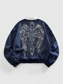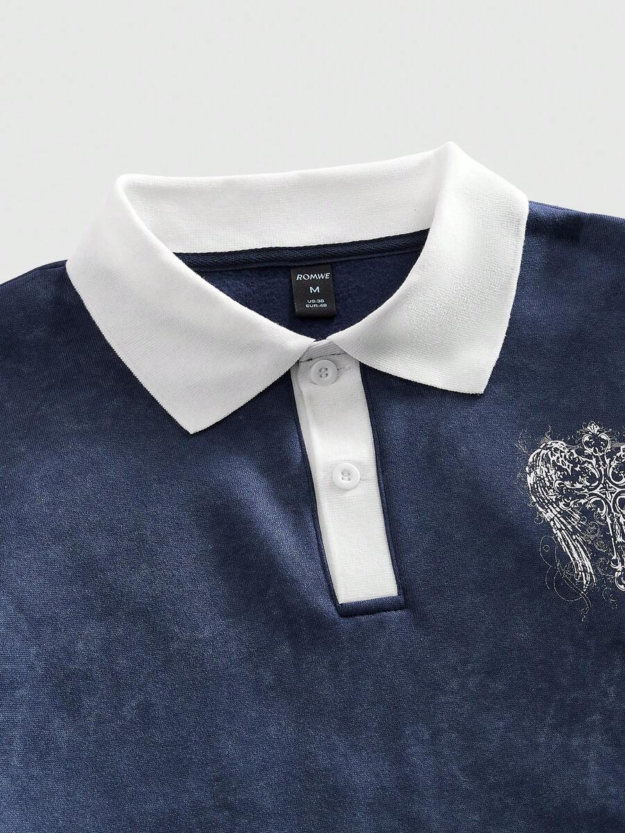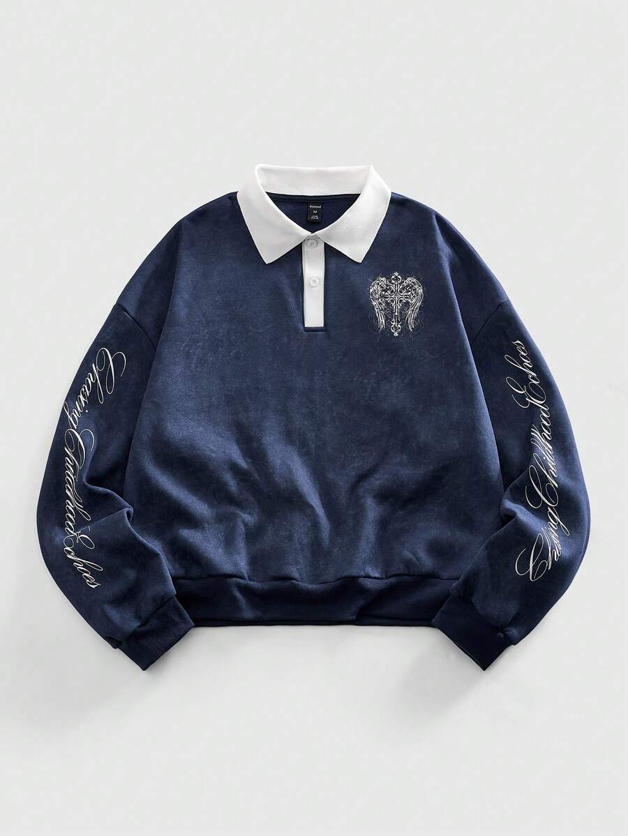 Goth Camicia polo casual a maniche lunghe con stampa di lettere, adatta per l'ufficio e il tempo libero, per uomo