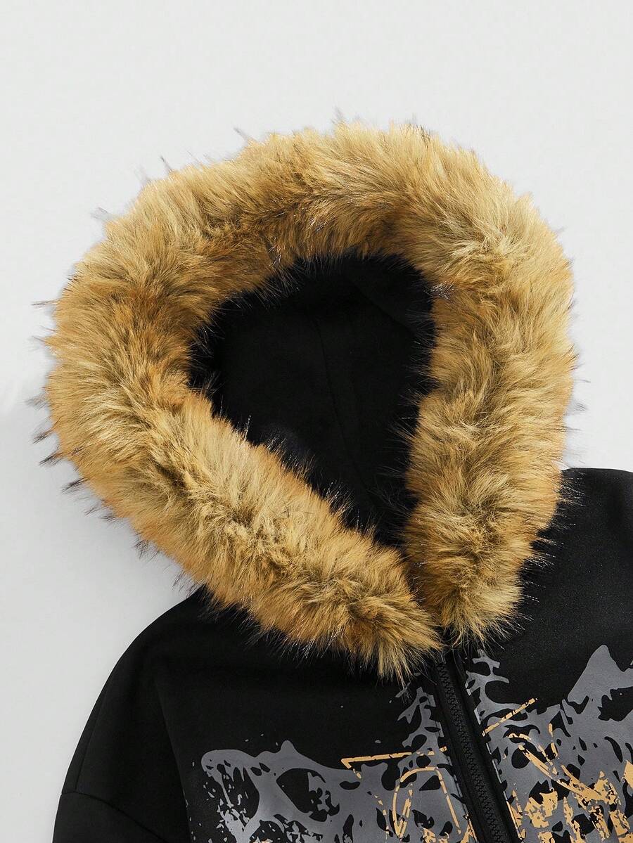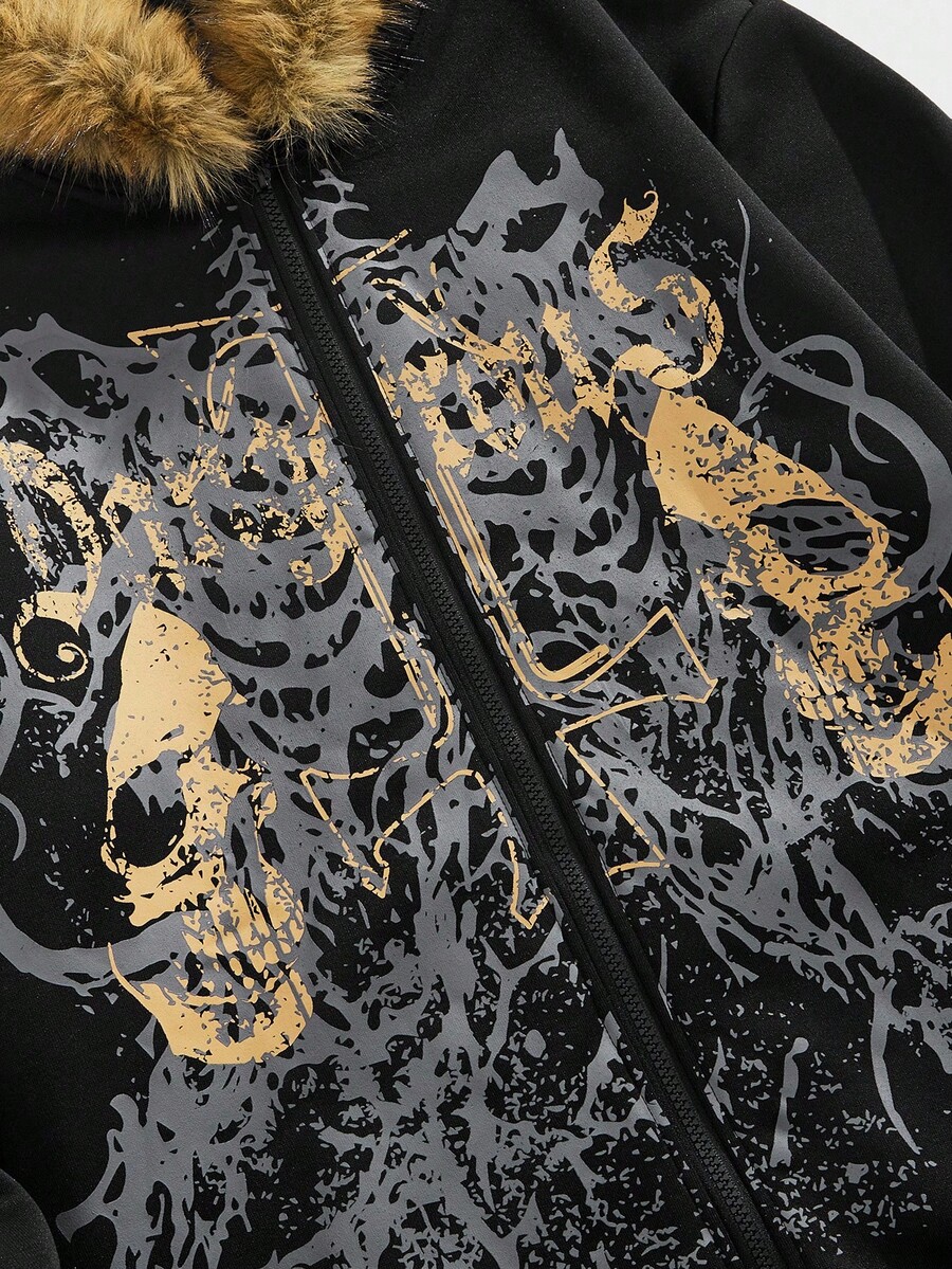 Goth Felpa con cappuccio con chiusura lampo e stampa teschio da uomo, casual, per autunno/inverno