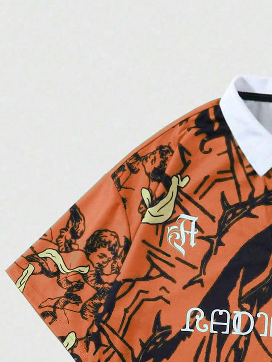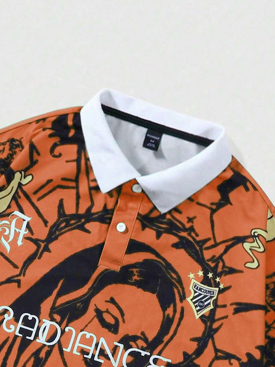 Polo a maniche corte con stampa slogan da uomo, adatta per l'uso quotidiano in primavera/estate