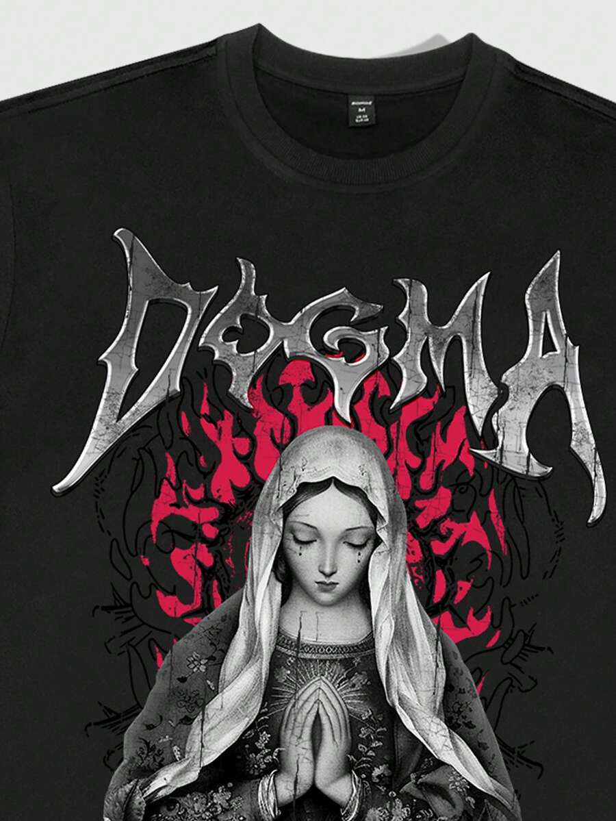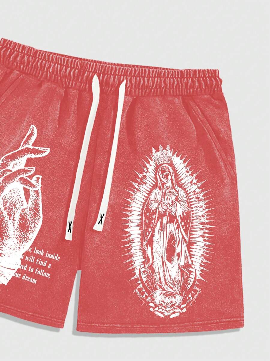 Goth Set di maglietta larga e pantaloncini con stampa della Vergine Maria per uomo
