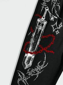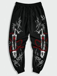 Goth Pantaloni da jogging da uomo con stampa di armi, vita con coulisse e tasche