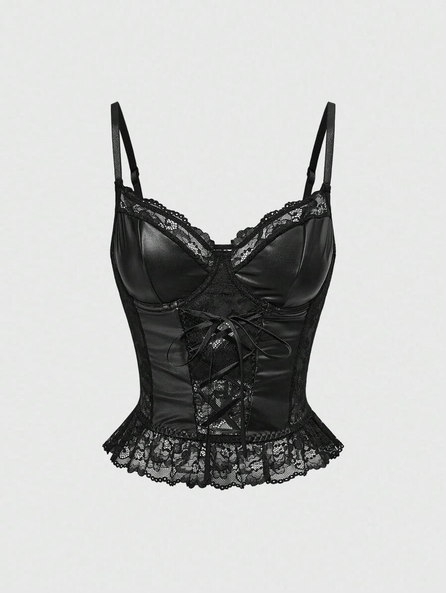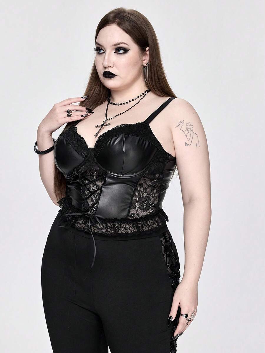 Goth Camisole a crop incrociata con patchwork a ciglie sexy e alla moda, taglie comode