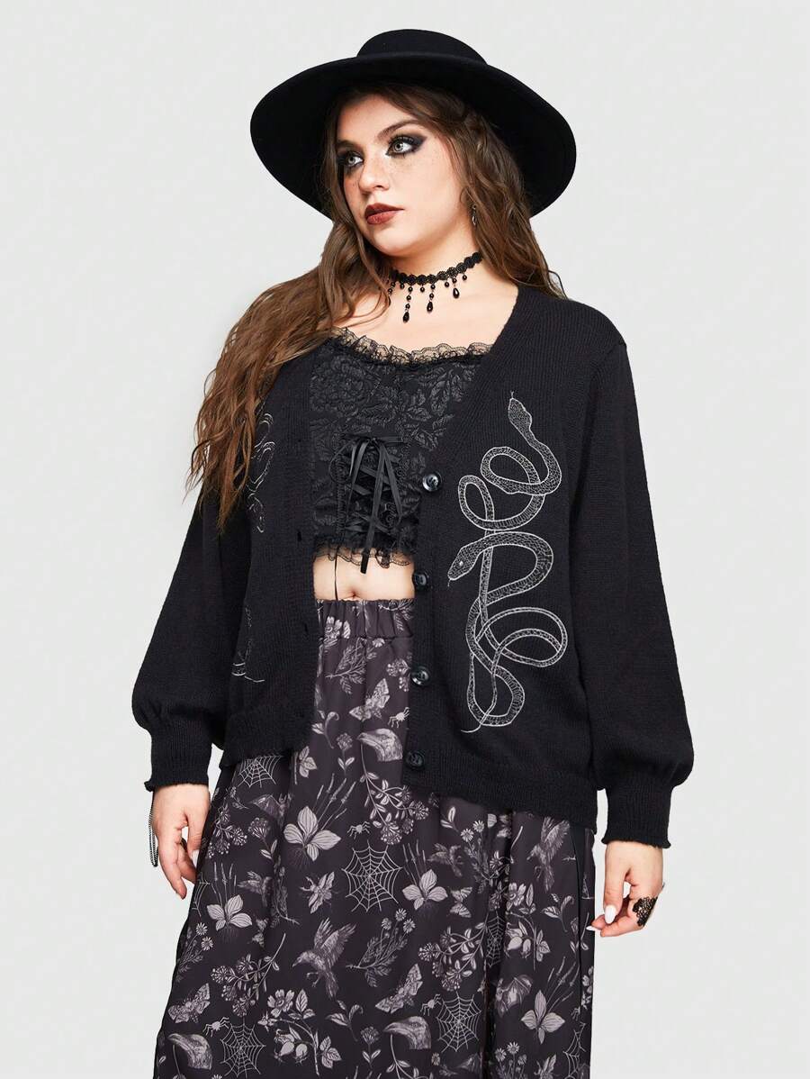 Goth Cardigan a maniche lunghe con ricamo a serpente in stile gotico taglie comode, per la scuola