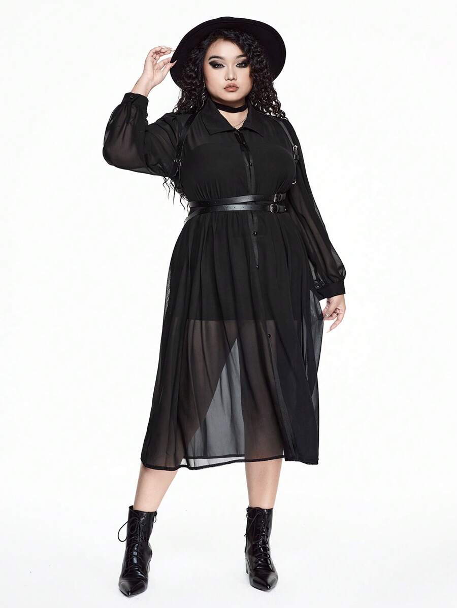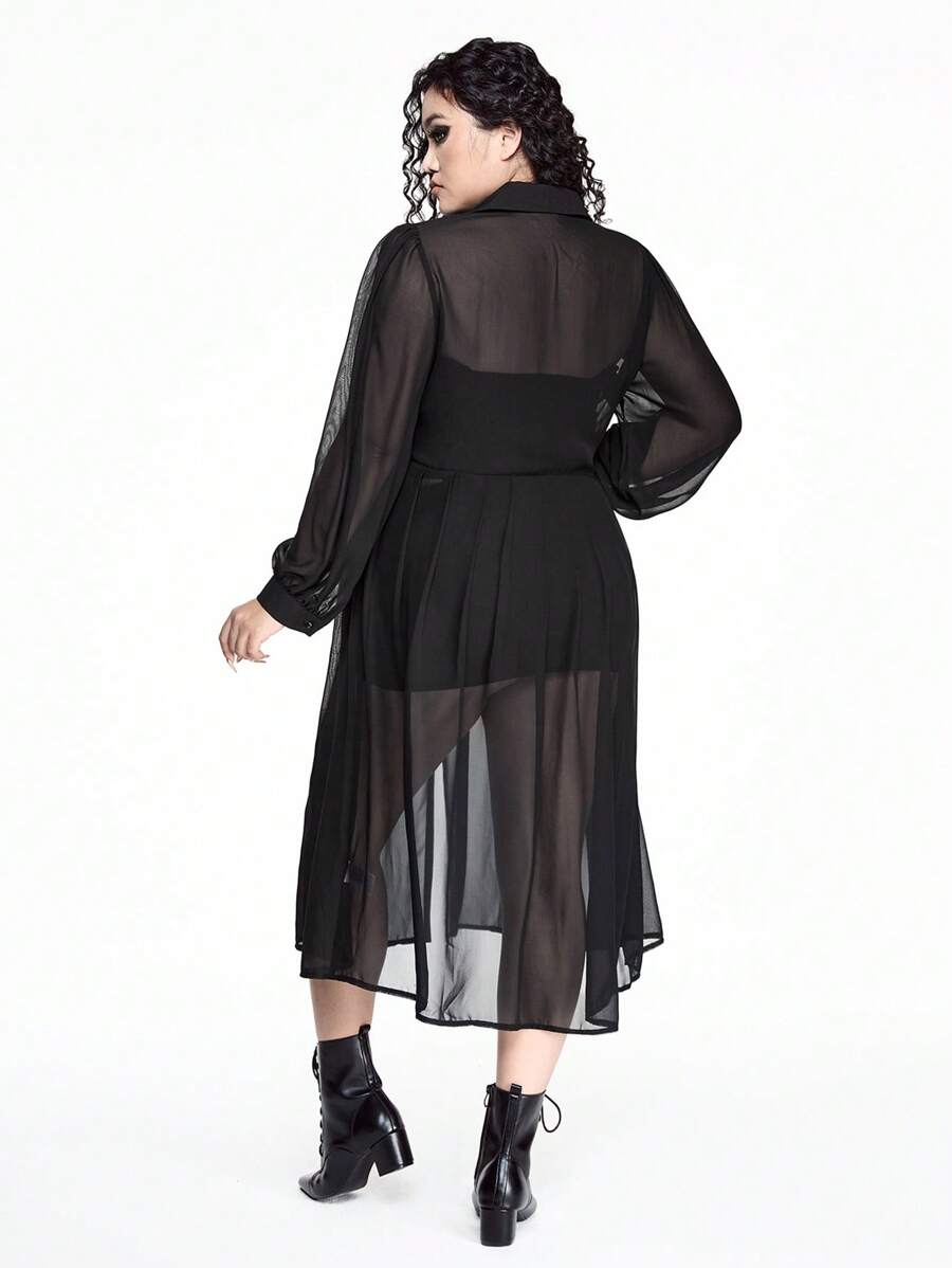 Goth Vestito cardigan in rete trasparente tinta unita, stile gotico e punk, per donne taglia grande