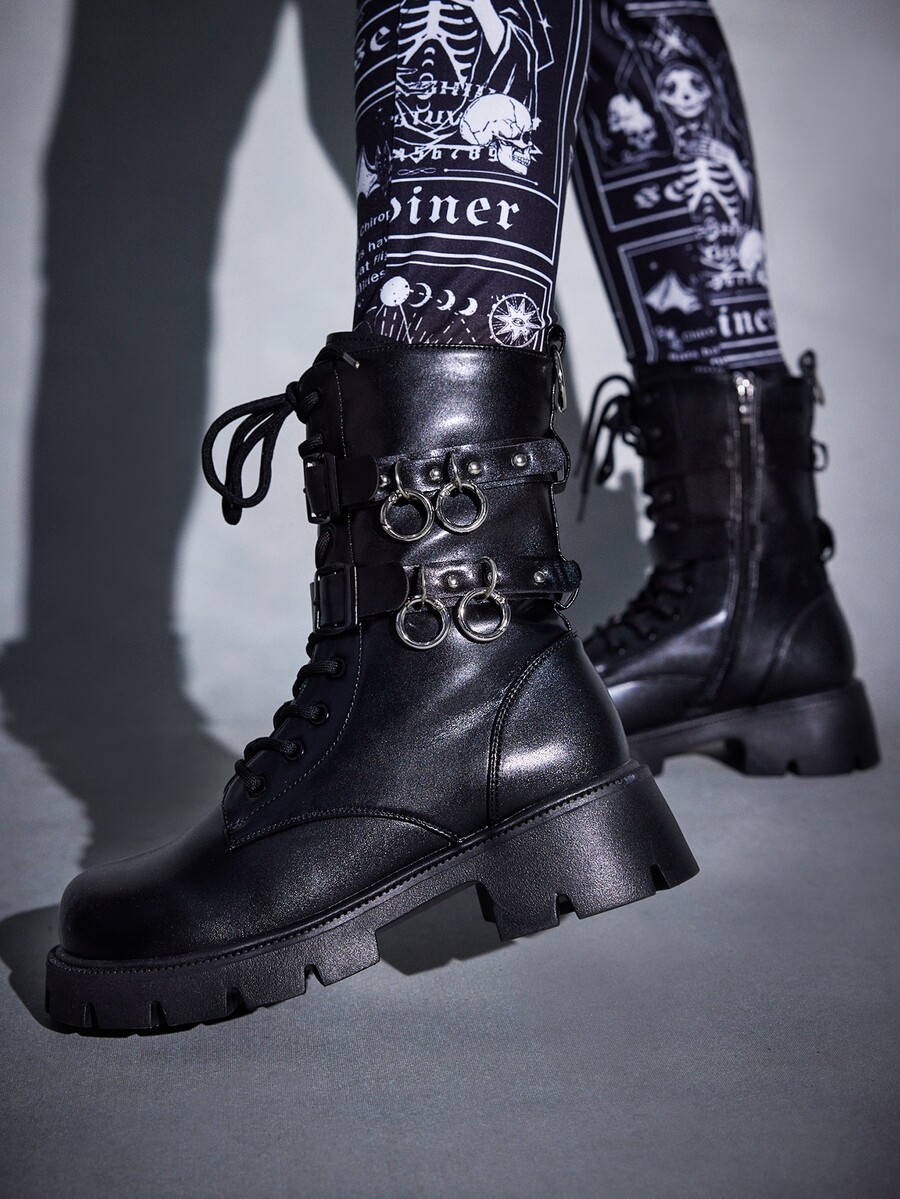 Goth Anello & con borchie con zip laterale lacci sul davanti Stivali combat
