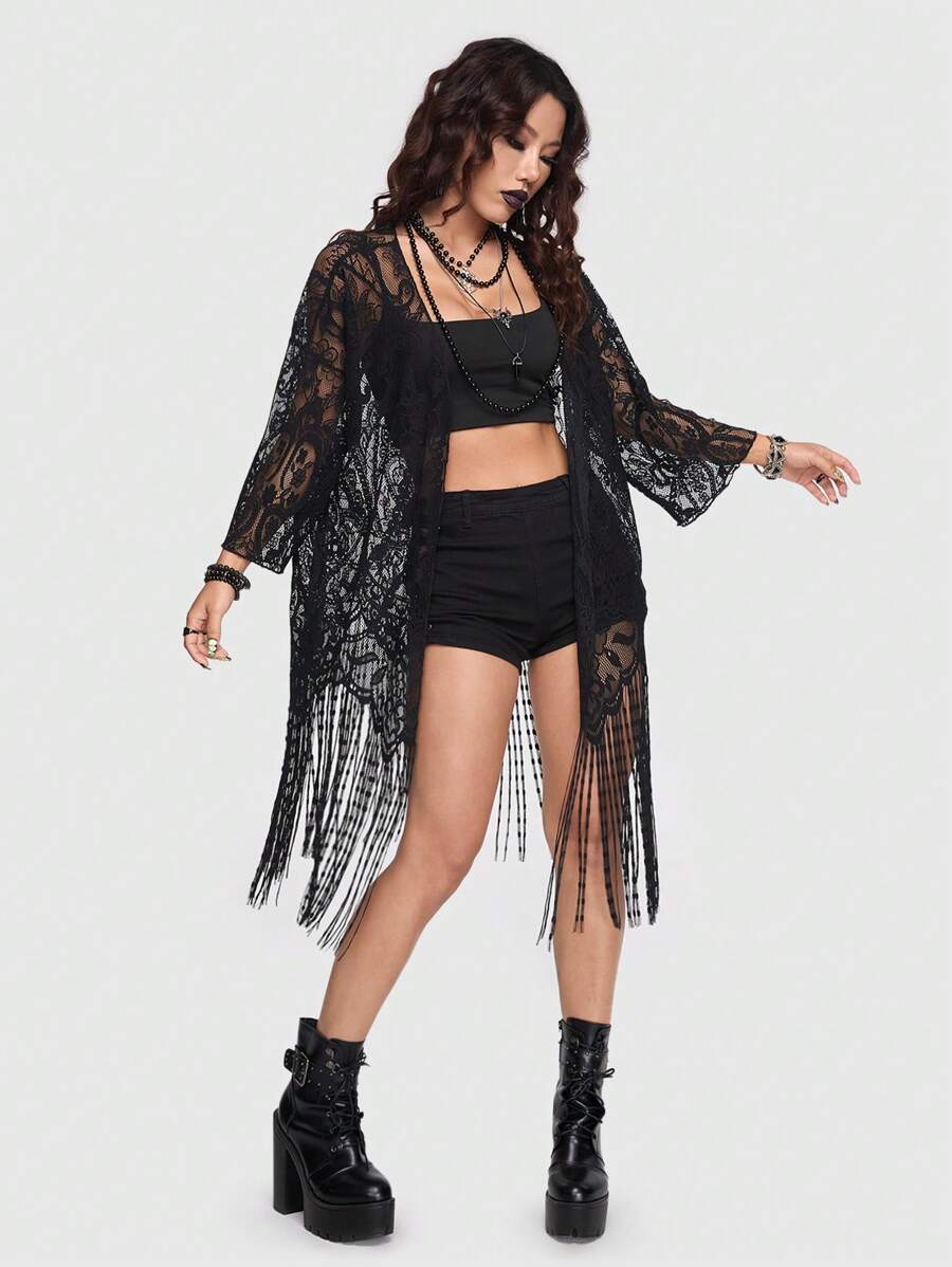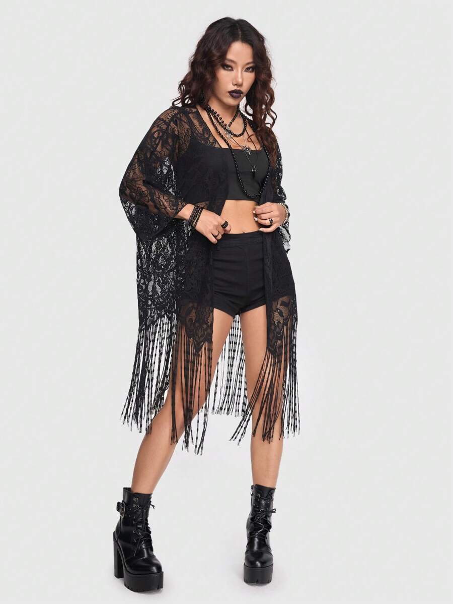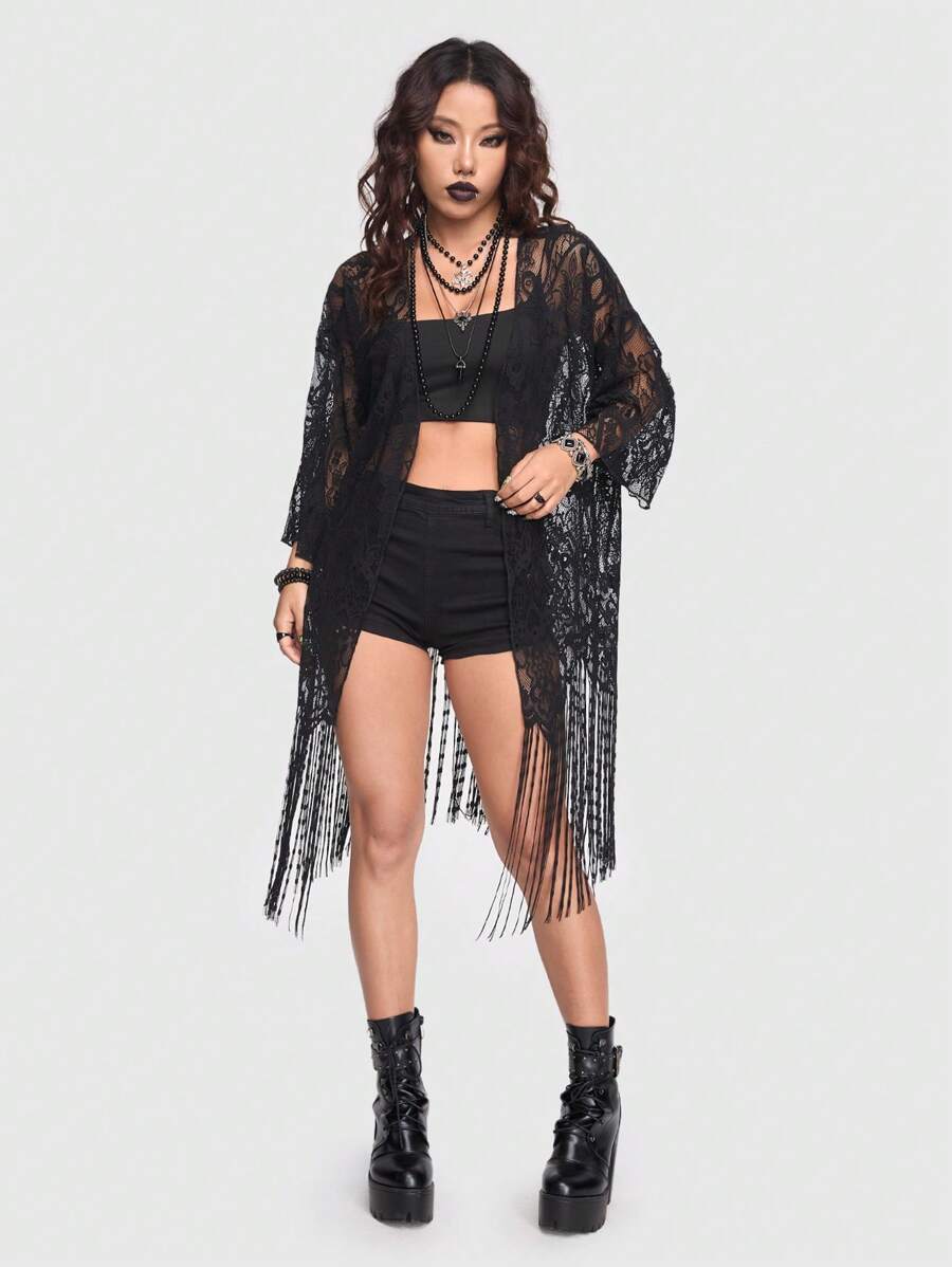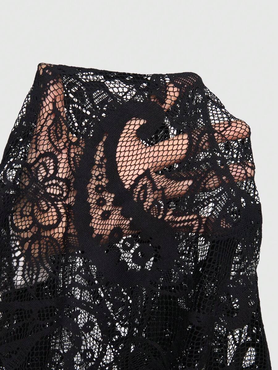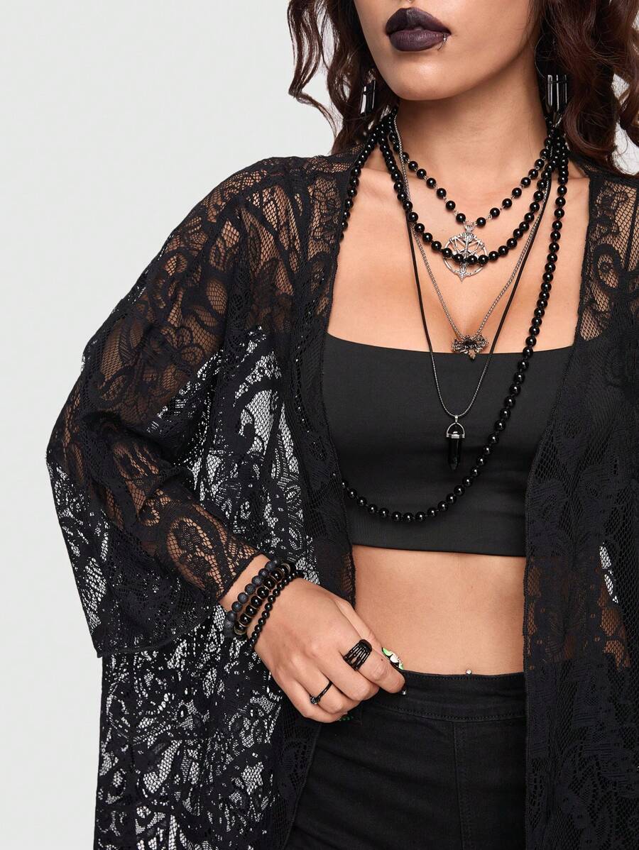 Goth Top Sexy In Pizzo Nero Con Prospettiva