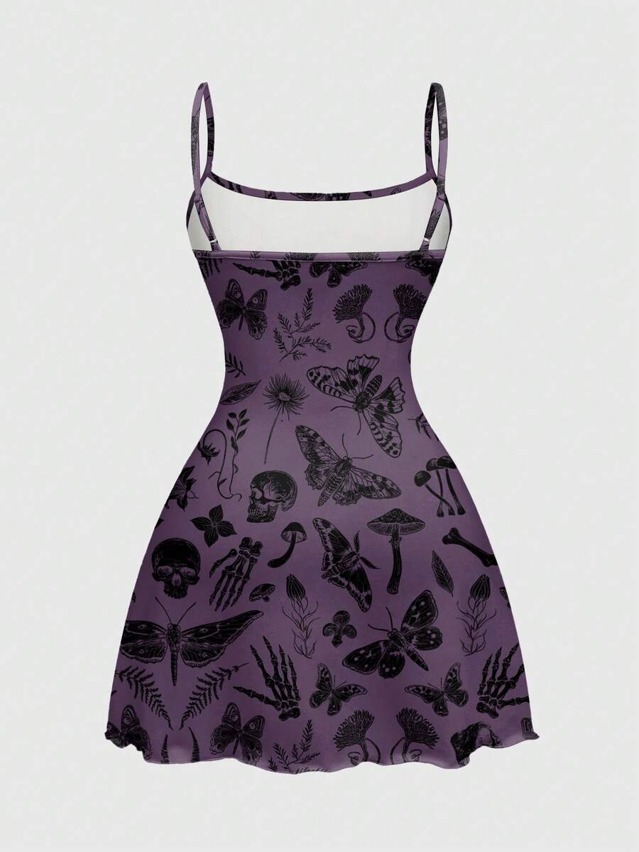 Goth Abito mini sexy e misterioso con stampa floreale e teschio
