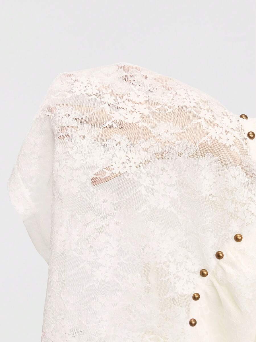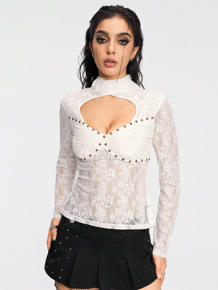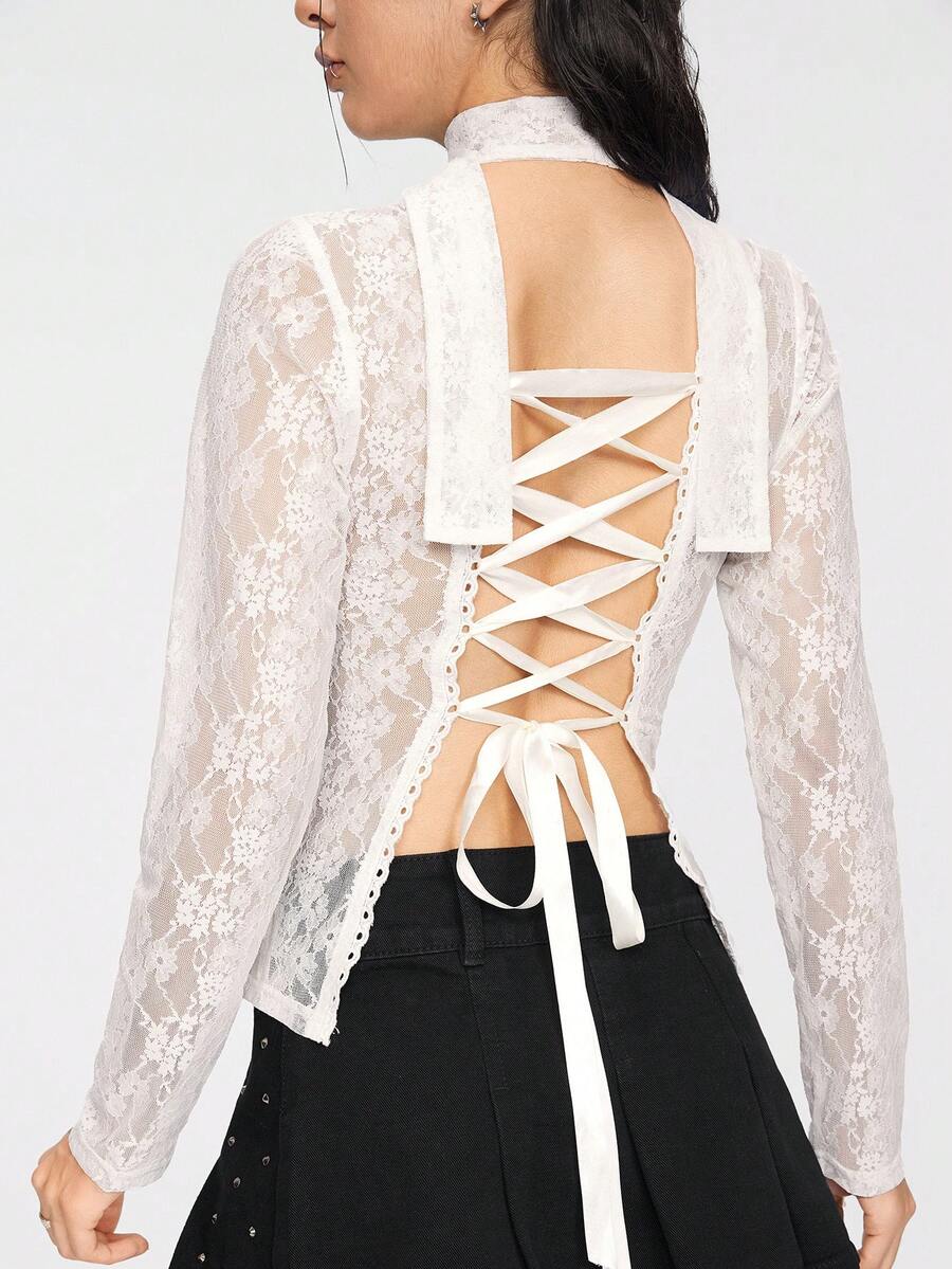 Goth Maglietta da donna trasparente, sexy in stile minimalista con pizzo morbido e schiena scoperta