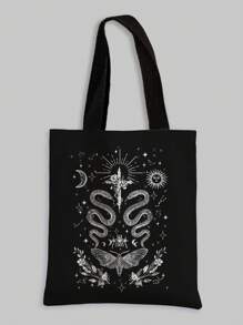 Goth Borsa a tracolla in tela stampata con motivi di serpente e farfalla reversibile, borsa a forma di farfalla, ideale per Ognissanti, borse perfette per feste in maschera da abbinare ai costumi di Ognissanti
