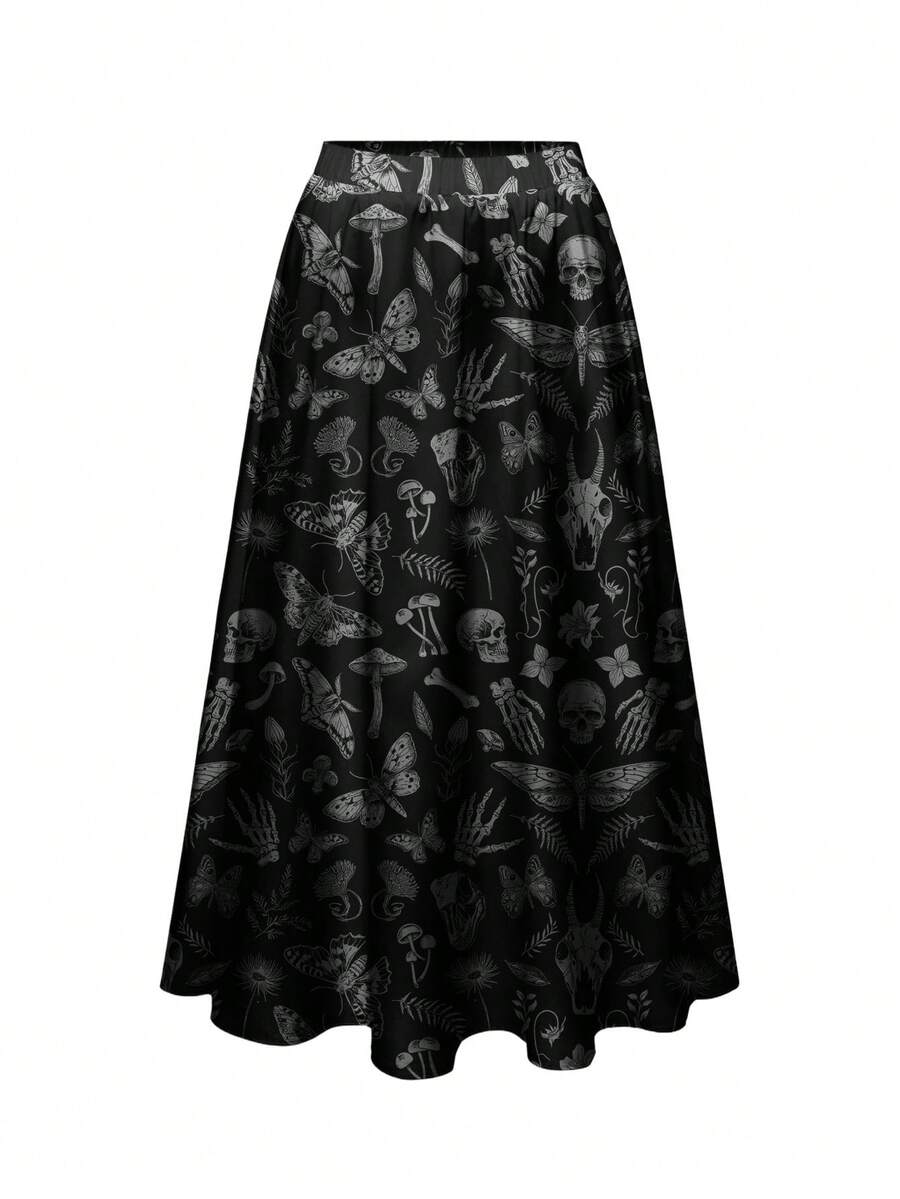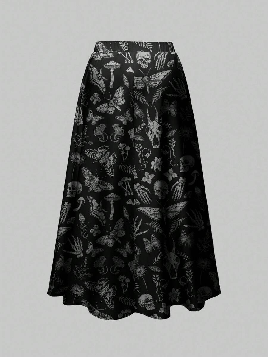 Goth Gonna oversize con stampa di scheletri, falene e pipistrelli, stile sciolto, tema Ognissanti, taglia comoda