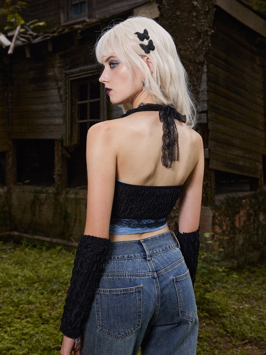 Goth Top halter strutturato tubo & con supermaniche