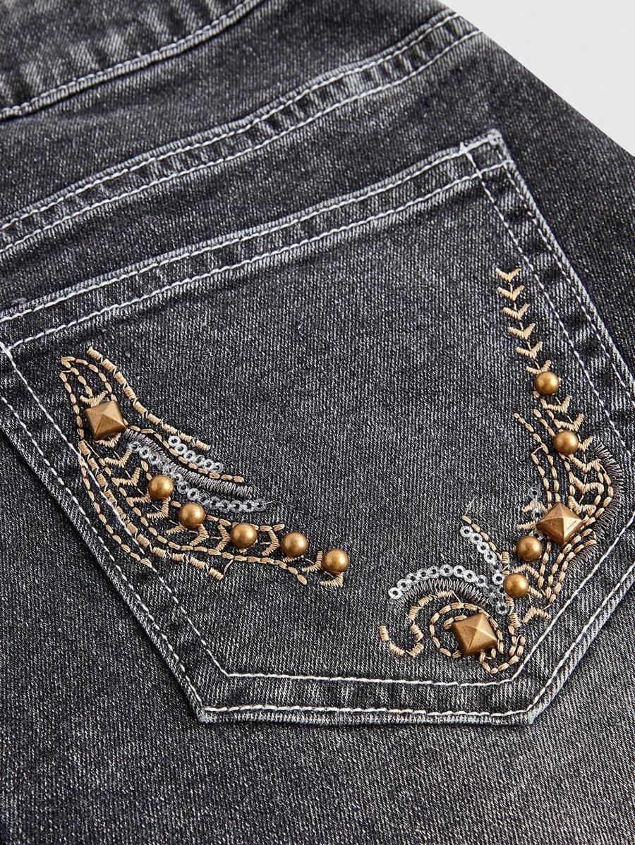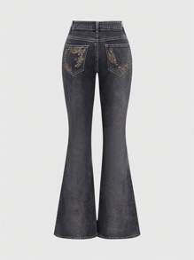 Goth Jeans a zampa vintage ricamati con motivo a vite e borchie in rame per donne