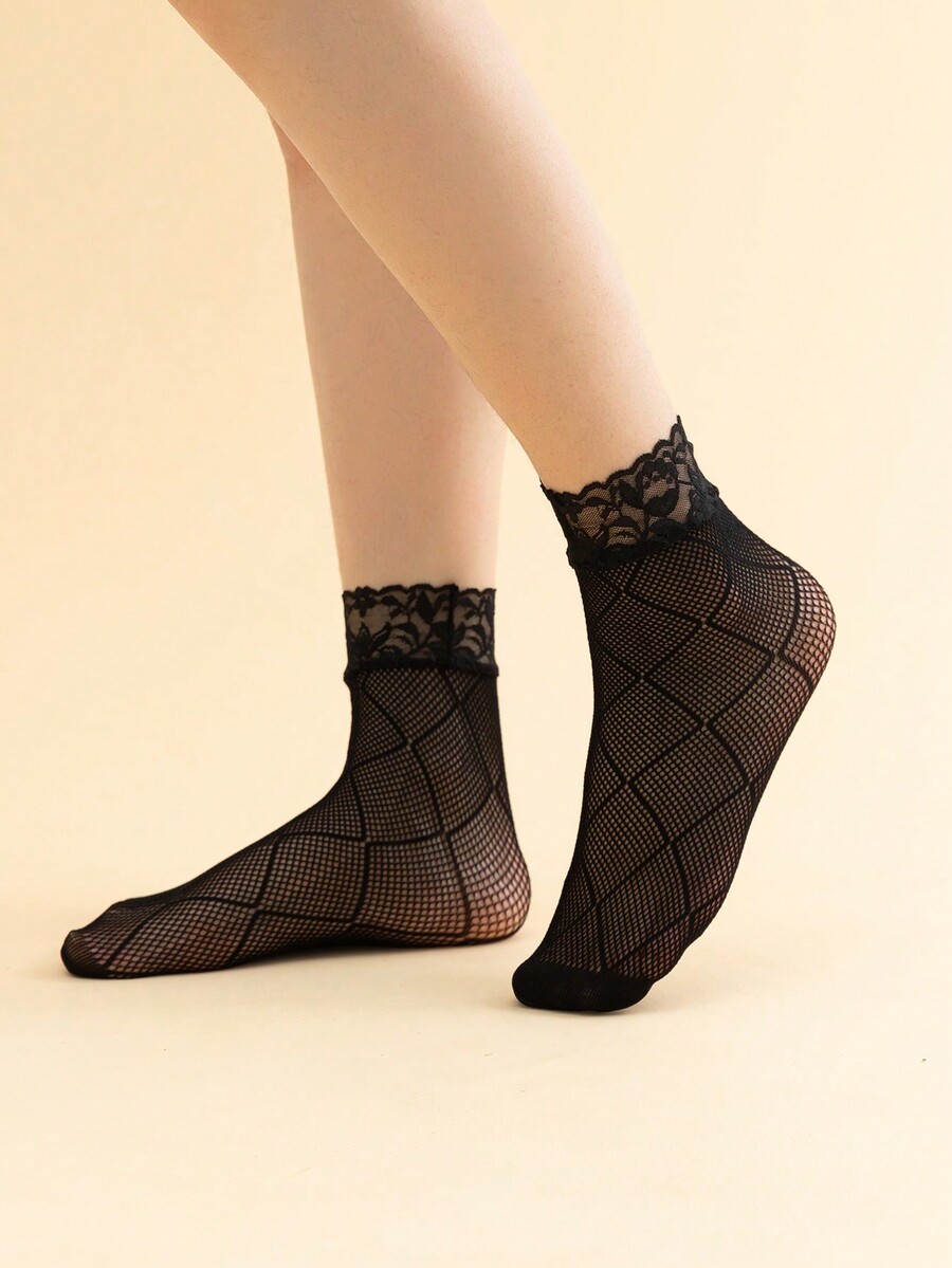 Goth Calzini Corti Alla Moda Da Donna Con Design In Mesh E Pizzo