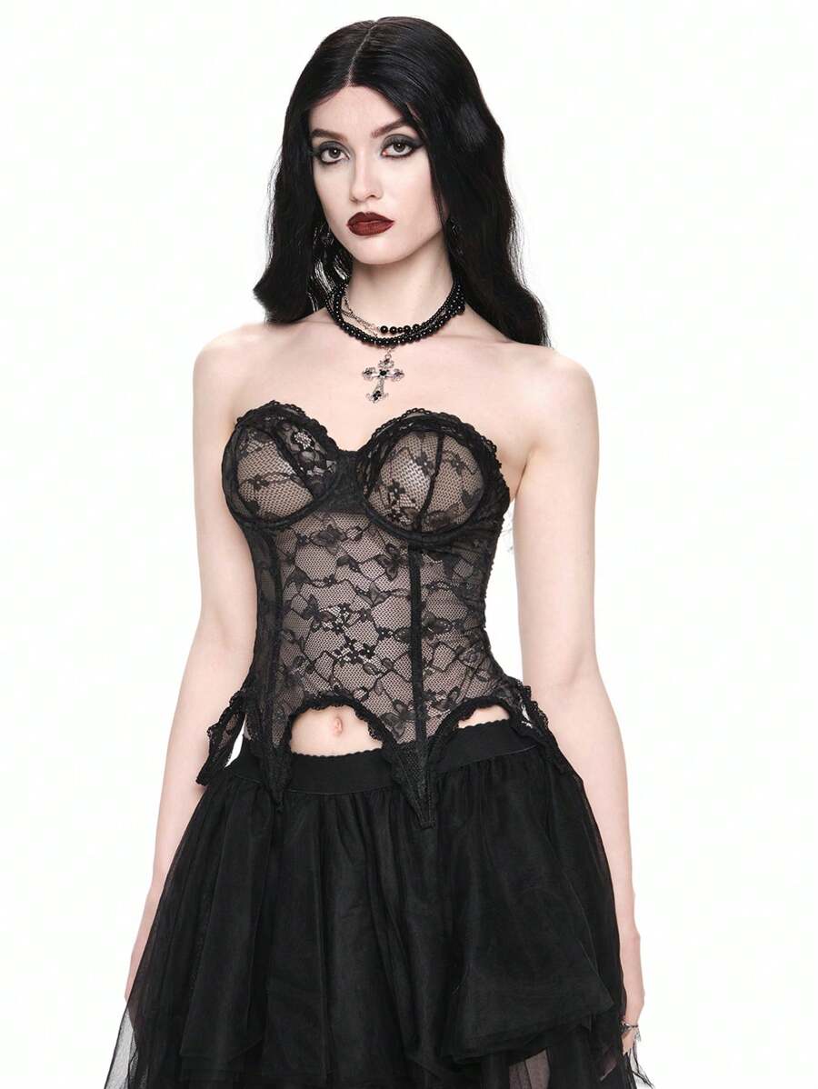 Goth Reggiseno a fascia in pizzo trasparente sexy da donna, può essere indossato come capo esterno