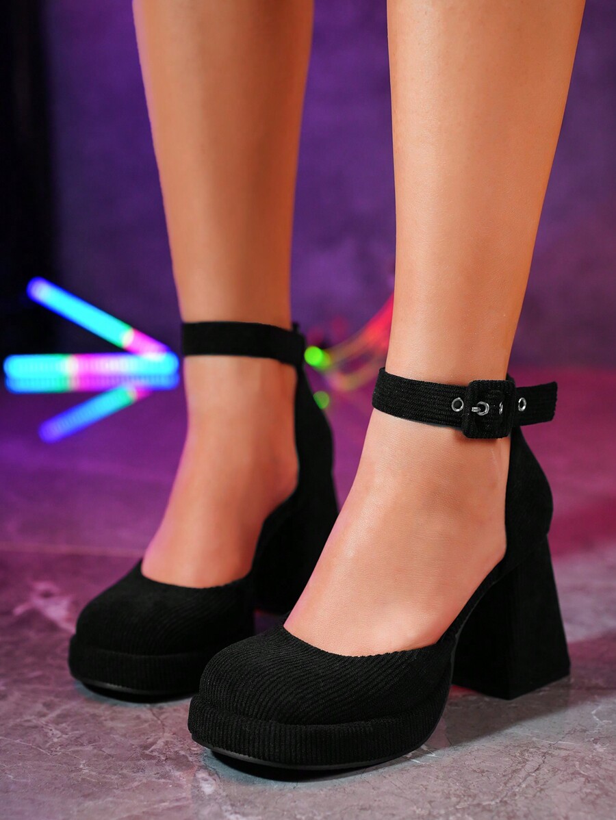 Goth Sandali con tacco alto e plateau in tessuto elastico nero con cinturino alla caviglia, per la primavera e l'estate 2024 da donna