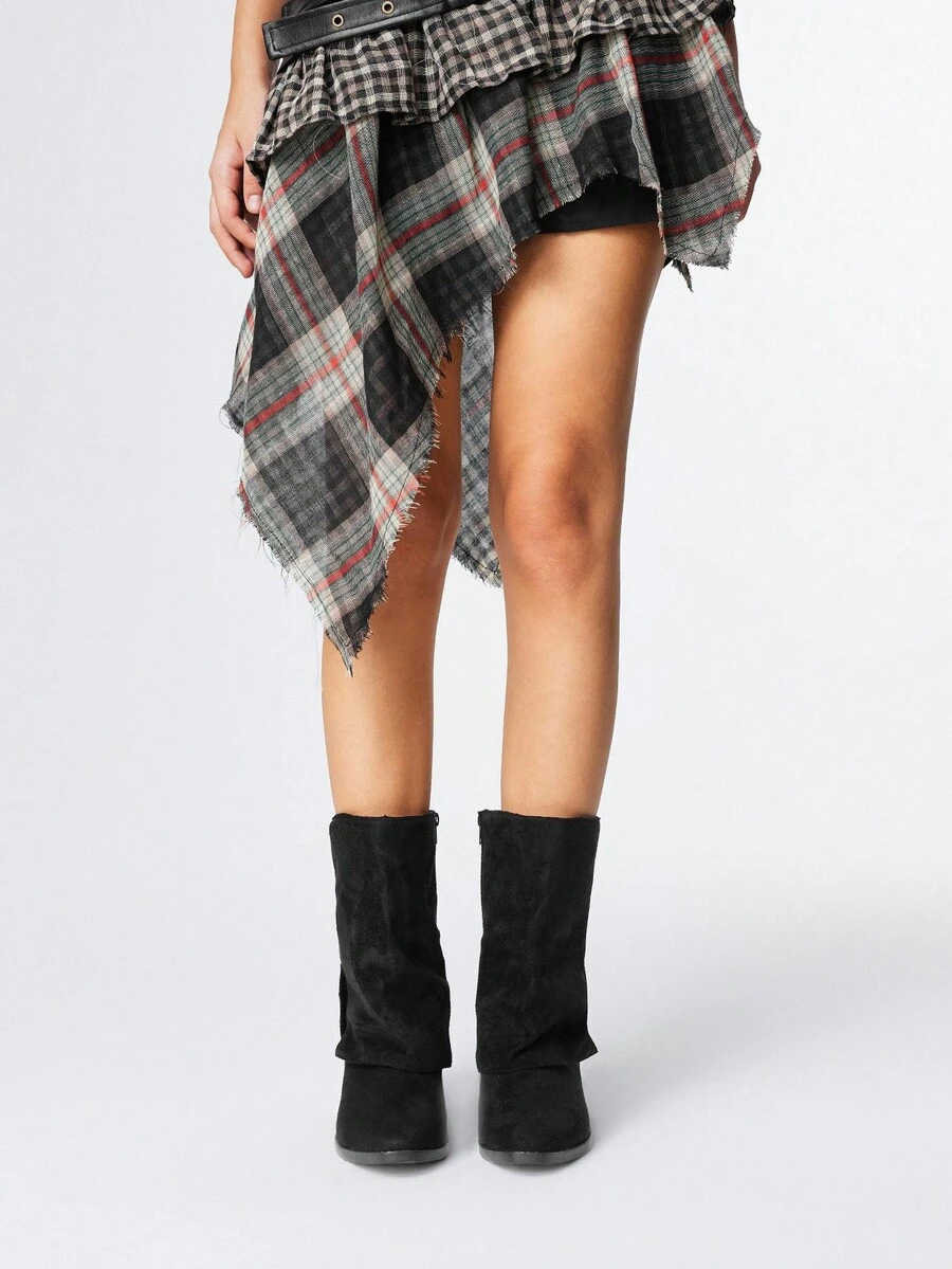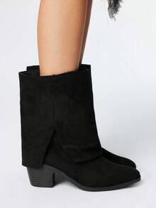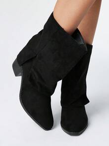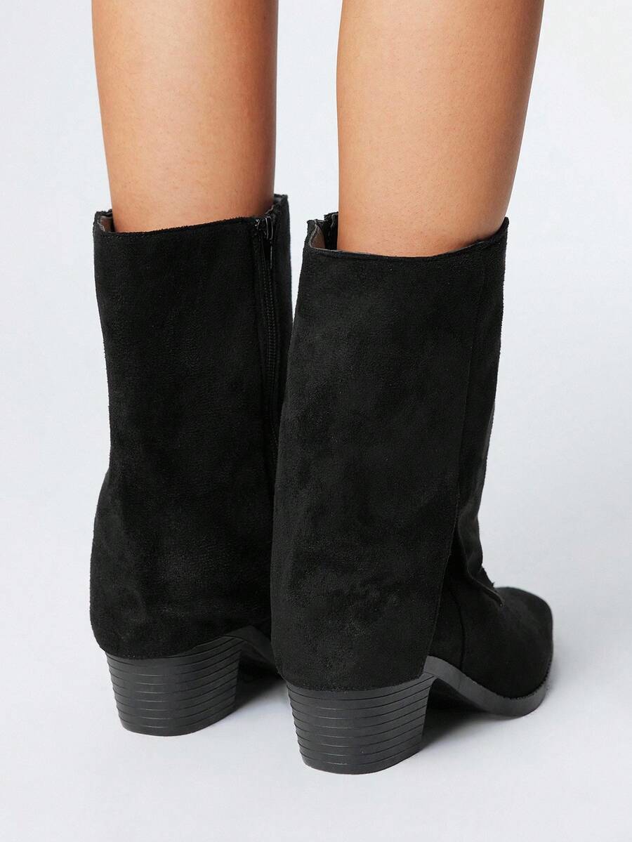 Goth Stivali neri da donna con punta affusolata e slip-on, stivali da equitazione con tacco chunky, stivali da motociclista con tacco basso, stivali al polpaccio