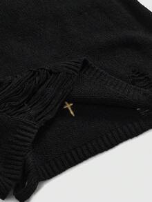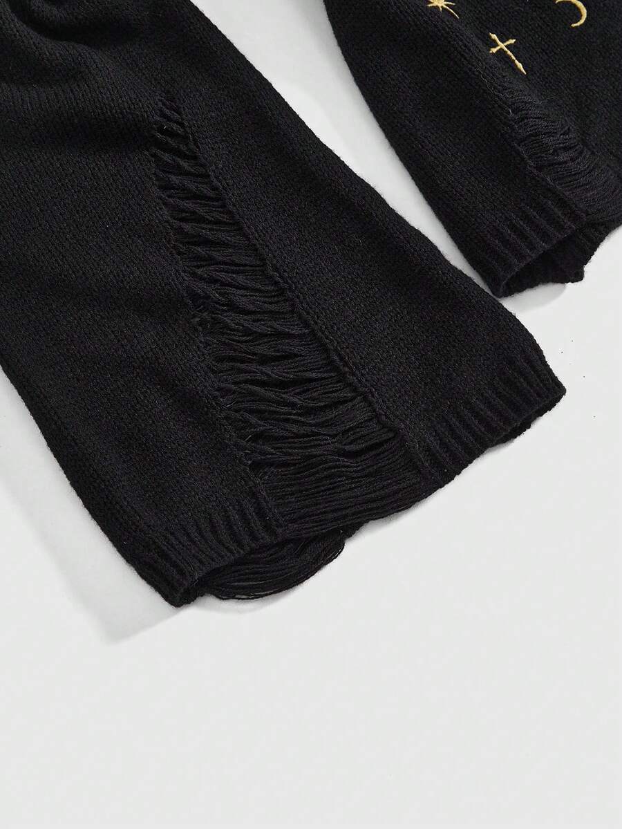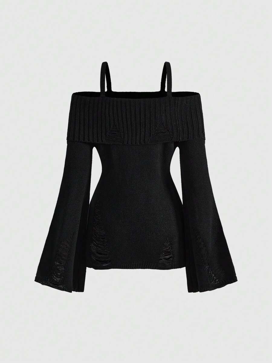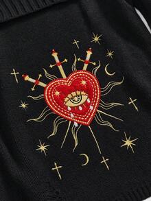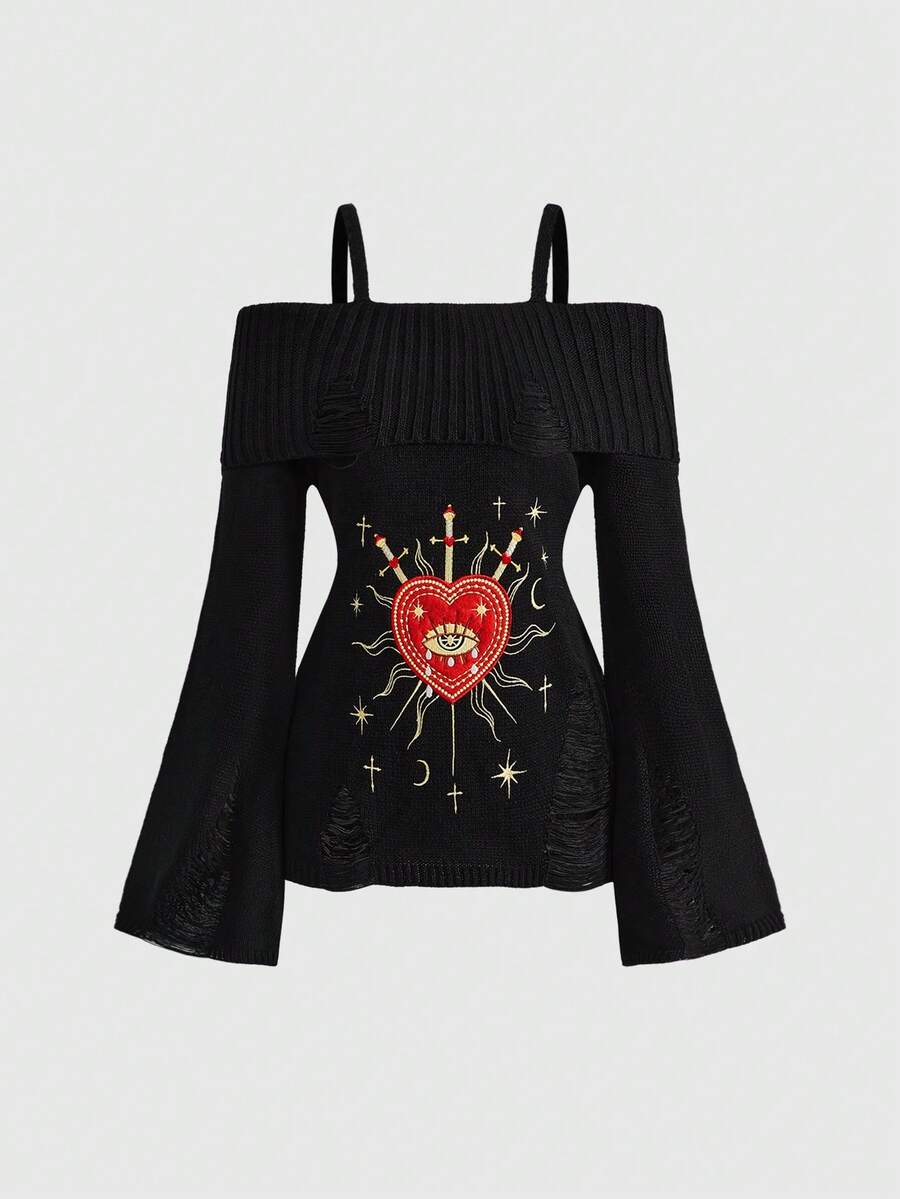 Goth Maglione casual da donna con ricamo a cuore, scollo a spalla e maniche a campana, adatto per autunno/inverno