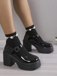 Goth Scarpe Mary Jane rivestito Nera Di Stile Retrò Da Scuola Per Donne, Con Cinturino A Fibbia, Tacchi A Zeppa E Suola Spessa, Arrivi Primavera/autunno 2024