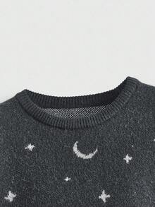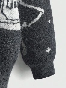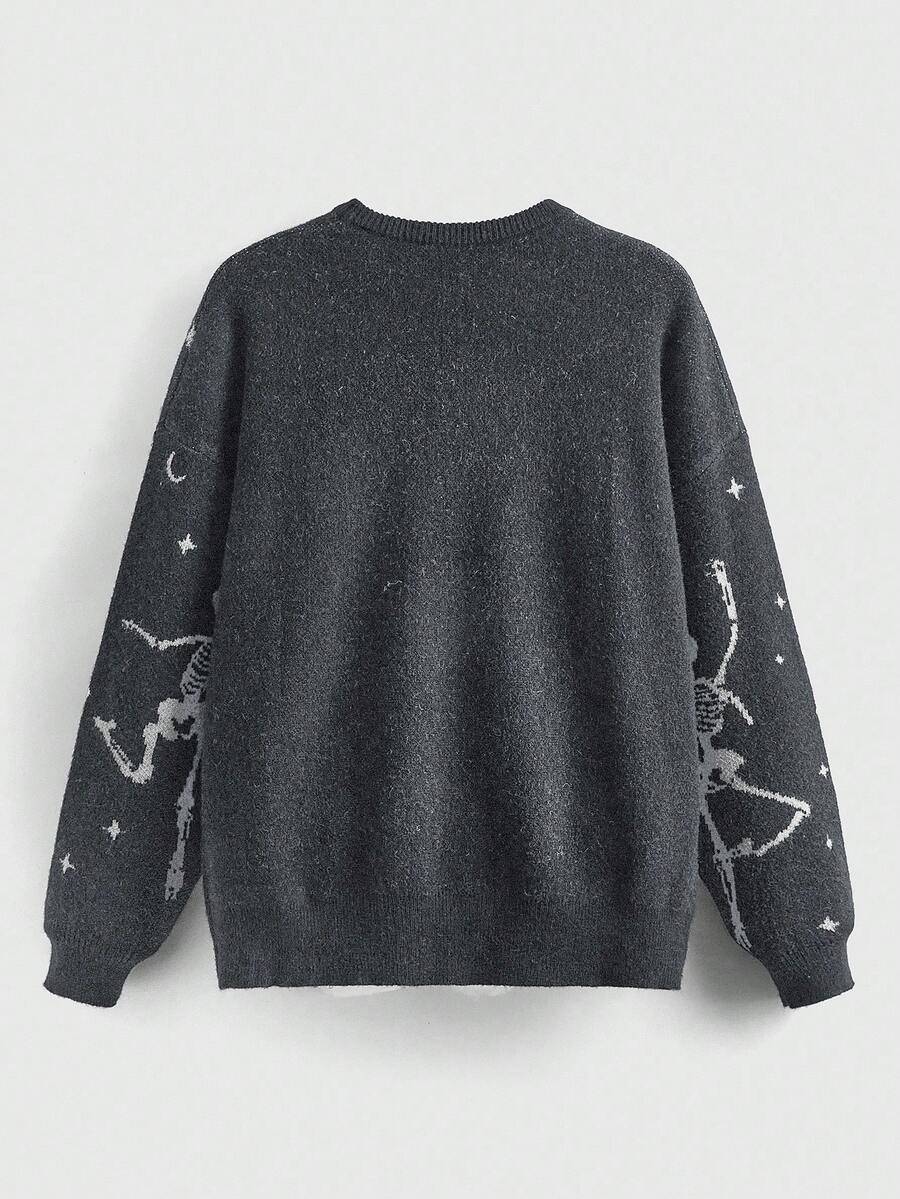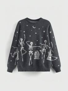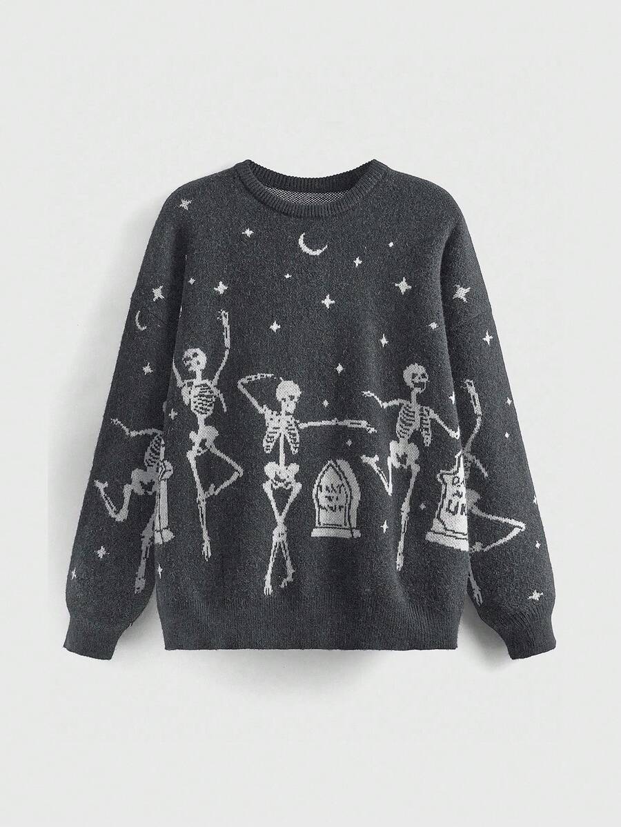 Goth Maglione oversize girocollo basic in jacquard con scheletro, stile retrò di Ognissanti, unisex