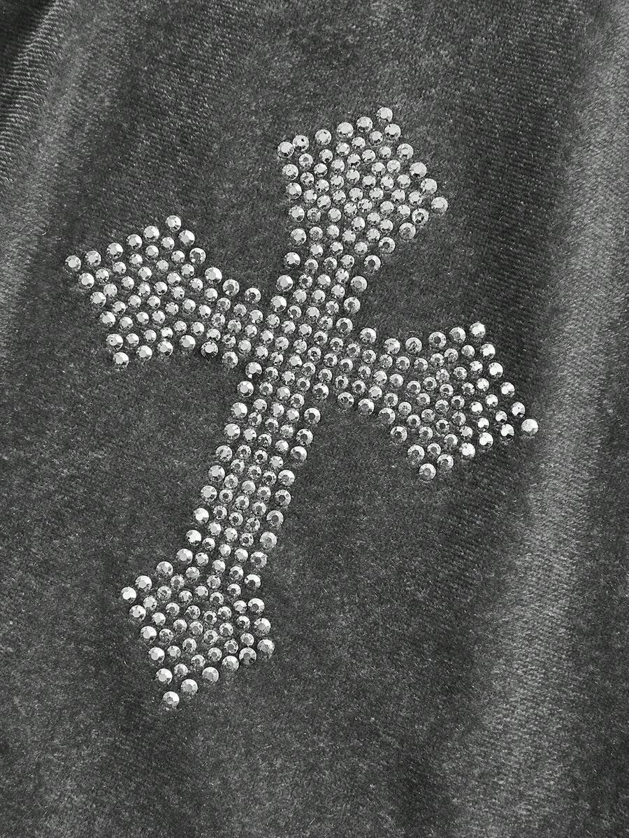 Goth Pantaloni lunghi alla moda con elasticità sulle caviglie e coulisse in vita con croce decorata di strass per donne