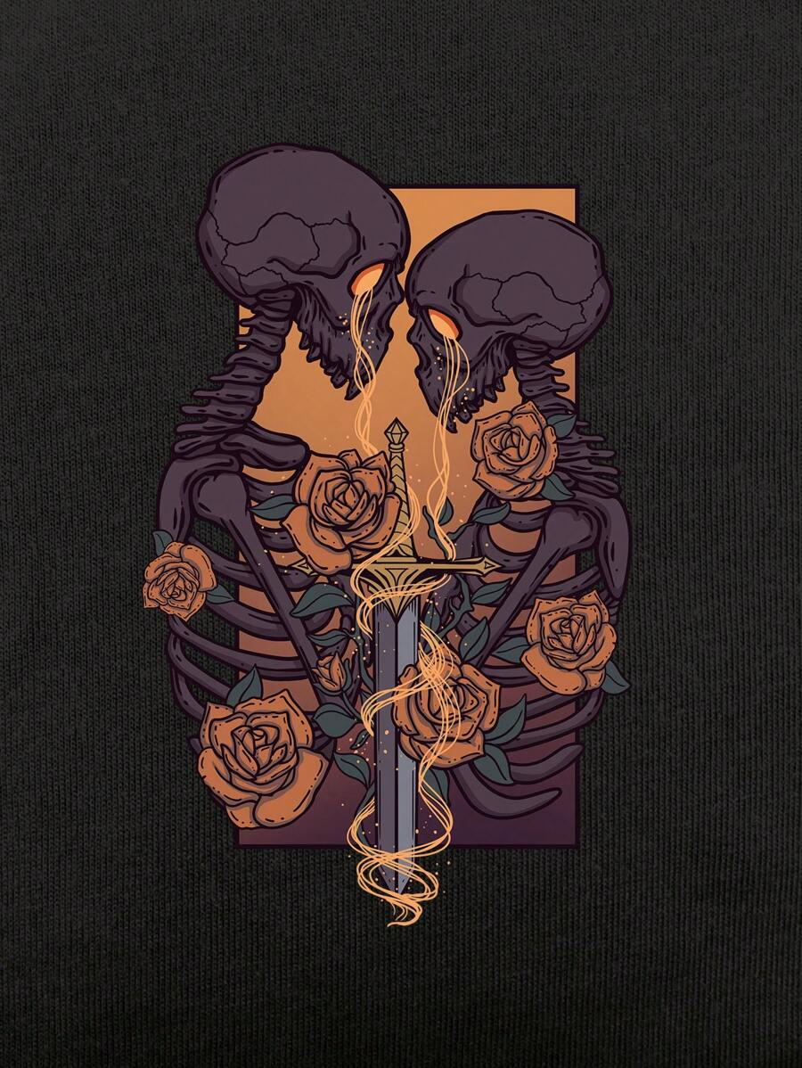 Goth Maglietta casual da donna a maniche corte oversize con stampa di scheletro di rosa