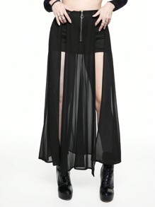 Goth Minigonna sexy da donna in chiffon e pelle sintetica PU con fibbia