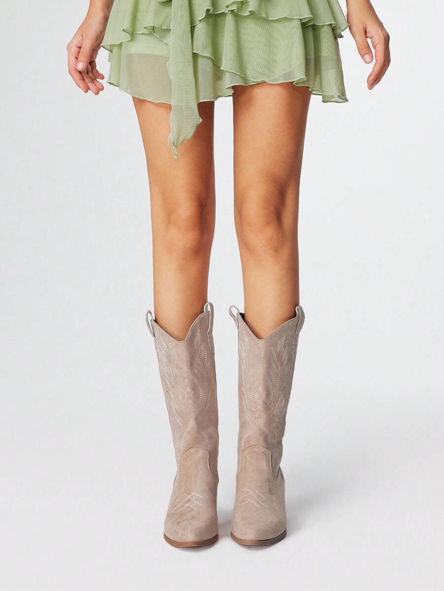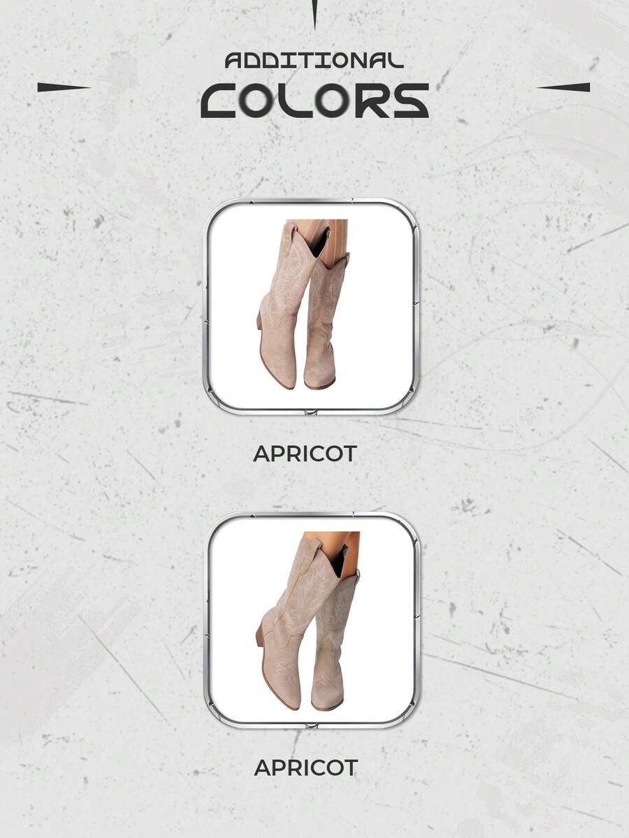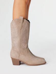 Goth Stivali western da donna con punta affusolata, suola spessa e ricami, beige, per la primavera e l autunno