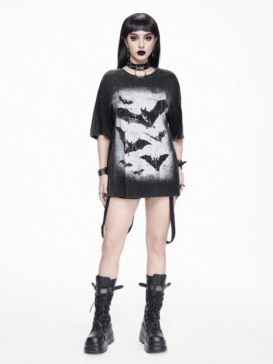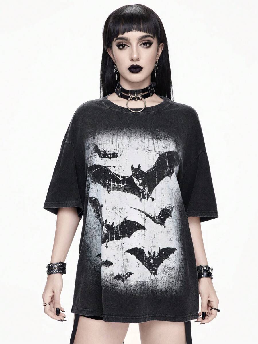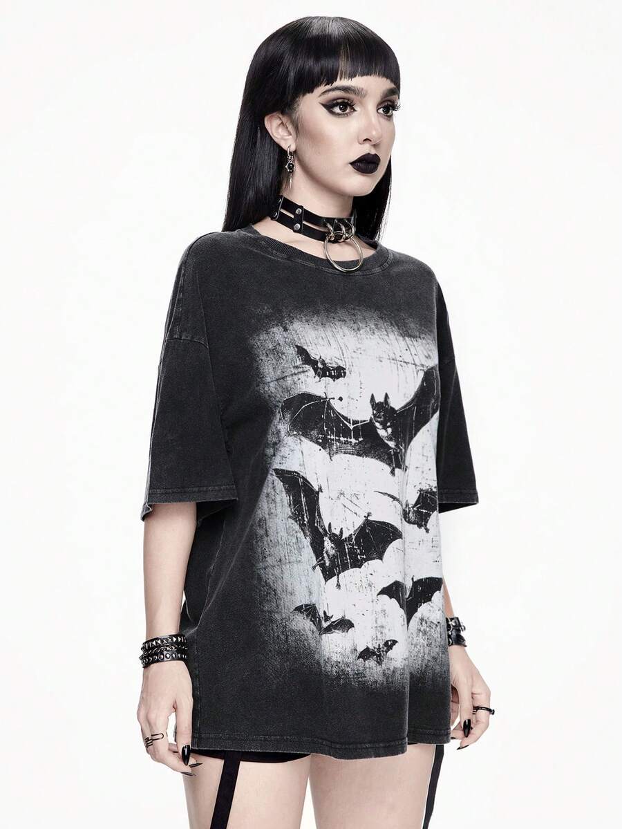 Goth Maglietta da donna con stampa disturbata di pipistrelli a fiocchi di neve estiva, per la scuola