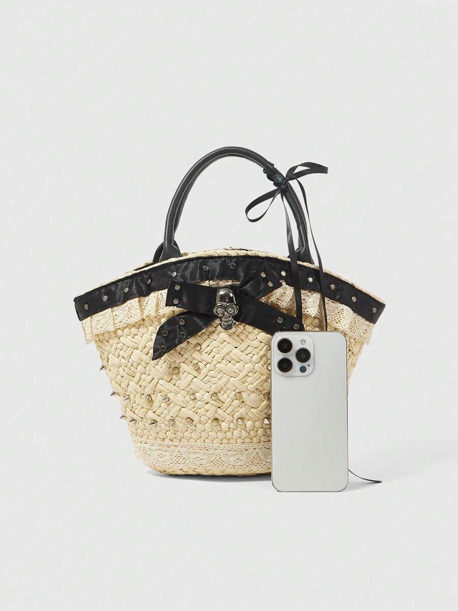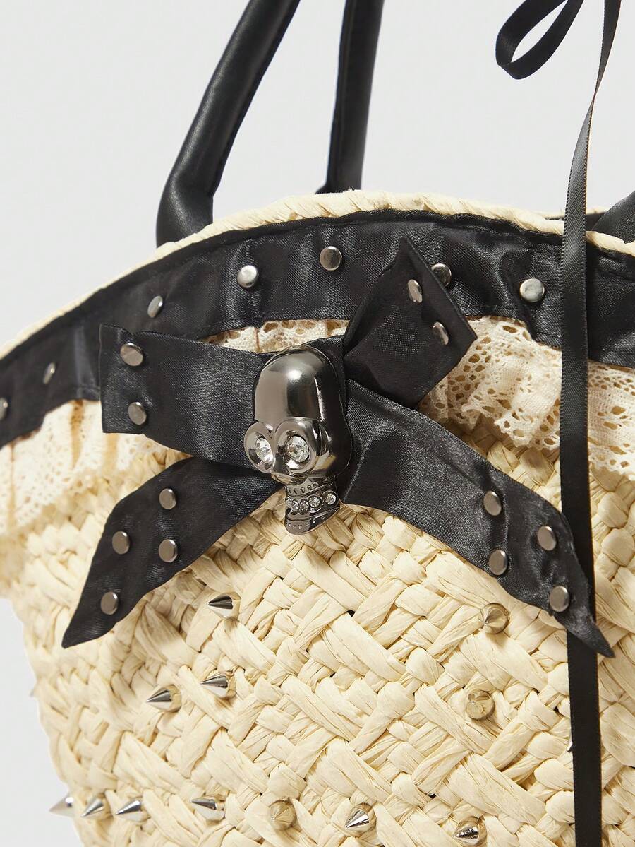 Goth Borsa a tracolla casual da donna per vacanze, con fiocco e dettagli in pizzo