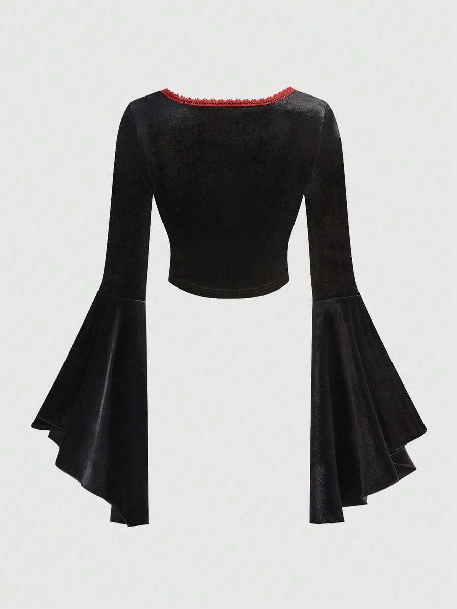 Goth Maglietta aderente in velluto da donna con ricami di streghe, cuori, croci e stelle, versatile
