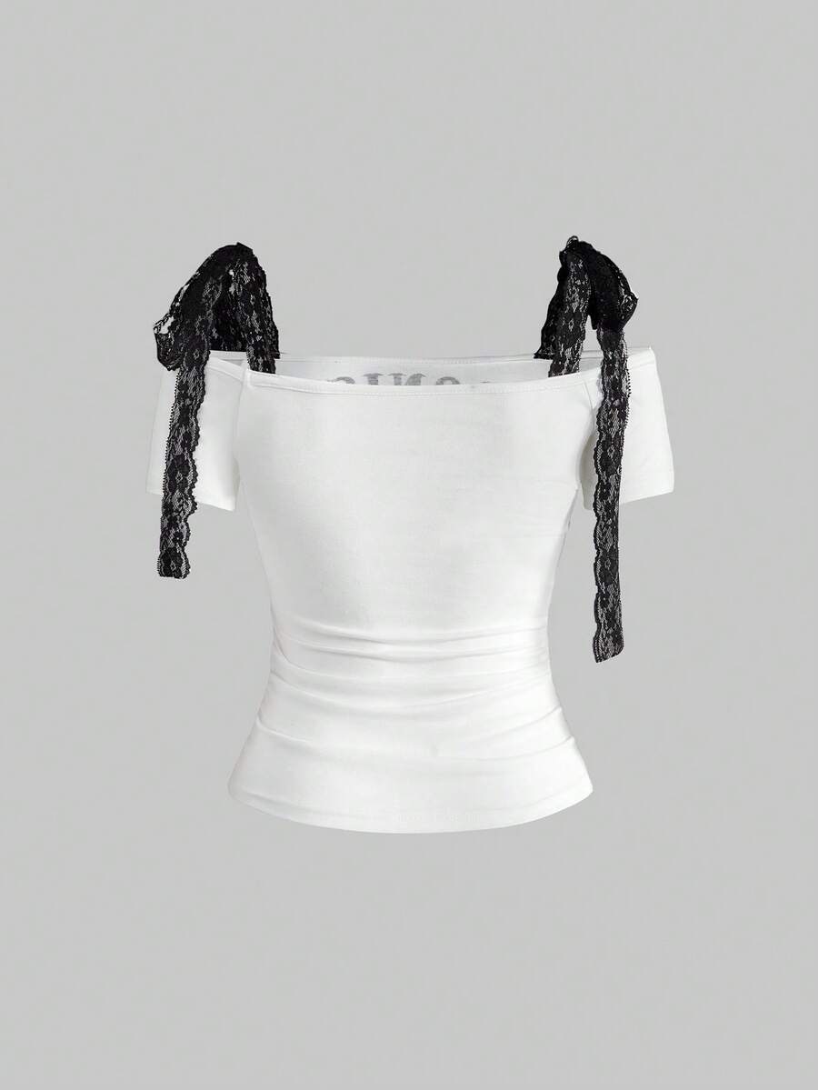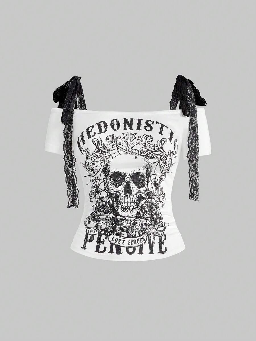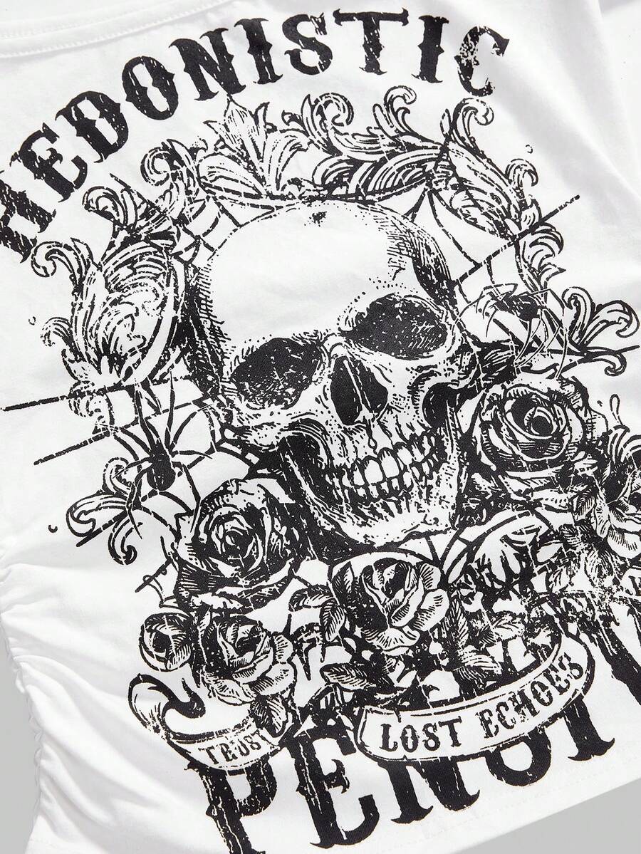 Goth Top corto retrò Y2K con stampa teschio e lacci, 2 in 1