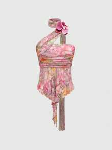Goth Top a tubo da donna stile Y2K con sciarpa in rete rimovibile, taglio laterale e arricciature, effetto pirata e look sexy