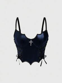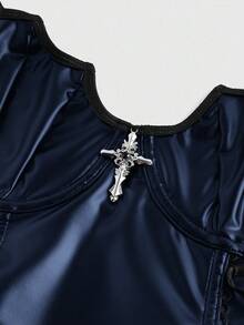 Goth Top da donna con laccetti frontali a tema pipistrello gotico, adatto per Ognissanti