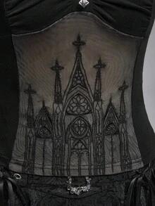 EDITION Tuta intera gotica da donna con pendente a croce, pizzo romantico e patchwork floccato