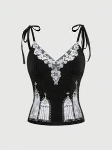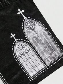 Goth Canotta in velluto con stampa di finestra a croce gotica, adatta per Ognissanti