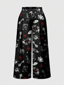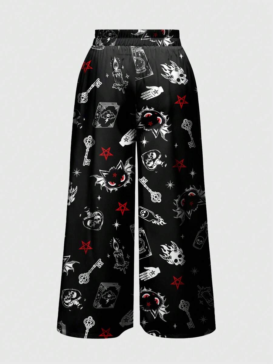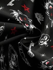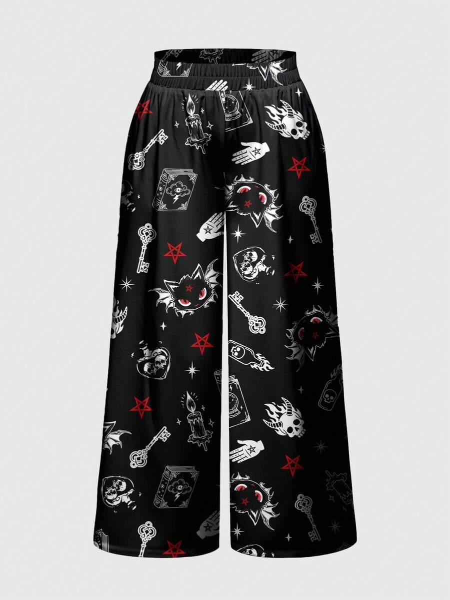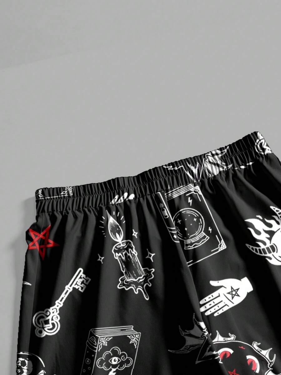 Goth Calze lunghe da donna in stile gotico scuro e carino, con stampa di teschio, fiamma, gatto e croce, in stile accademico magico
