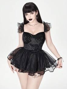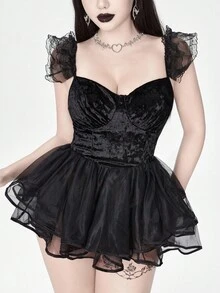 Goth Abito Lolita in velluto stile gotico dark swan, set da cosplay